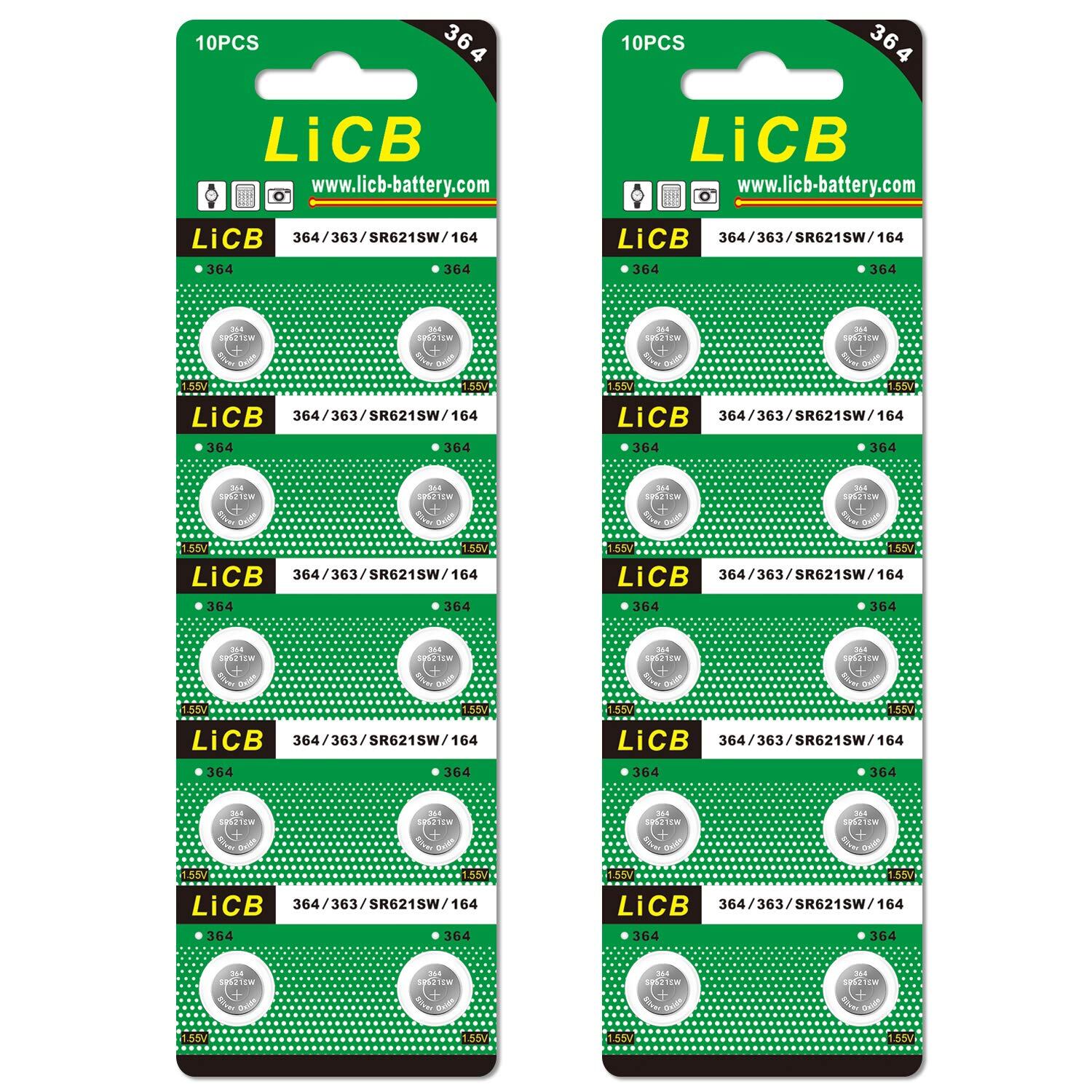 LiCB 20個 SR621SW ボタン電池 時計用【SR621SW、363 、LR621、AG1、364、164相当品】