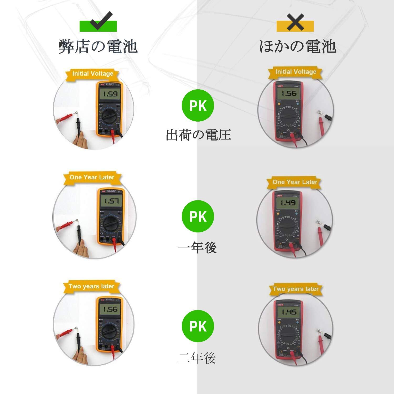 「耐久性と信頼性」SR621SW酸化銀電池は優れた保存性と信頼性を持っています。 酸化銀などの組み合わせにより、化学的に非常に安定しています。1.5V+の高い電圧を持ち、長期間使う、耐久性に優れた、電量や電圧が十分です。3年間の貯蔵寿命