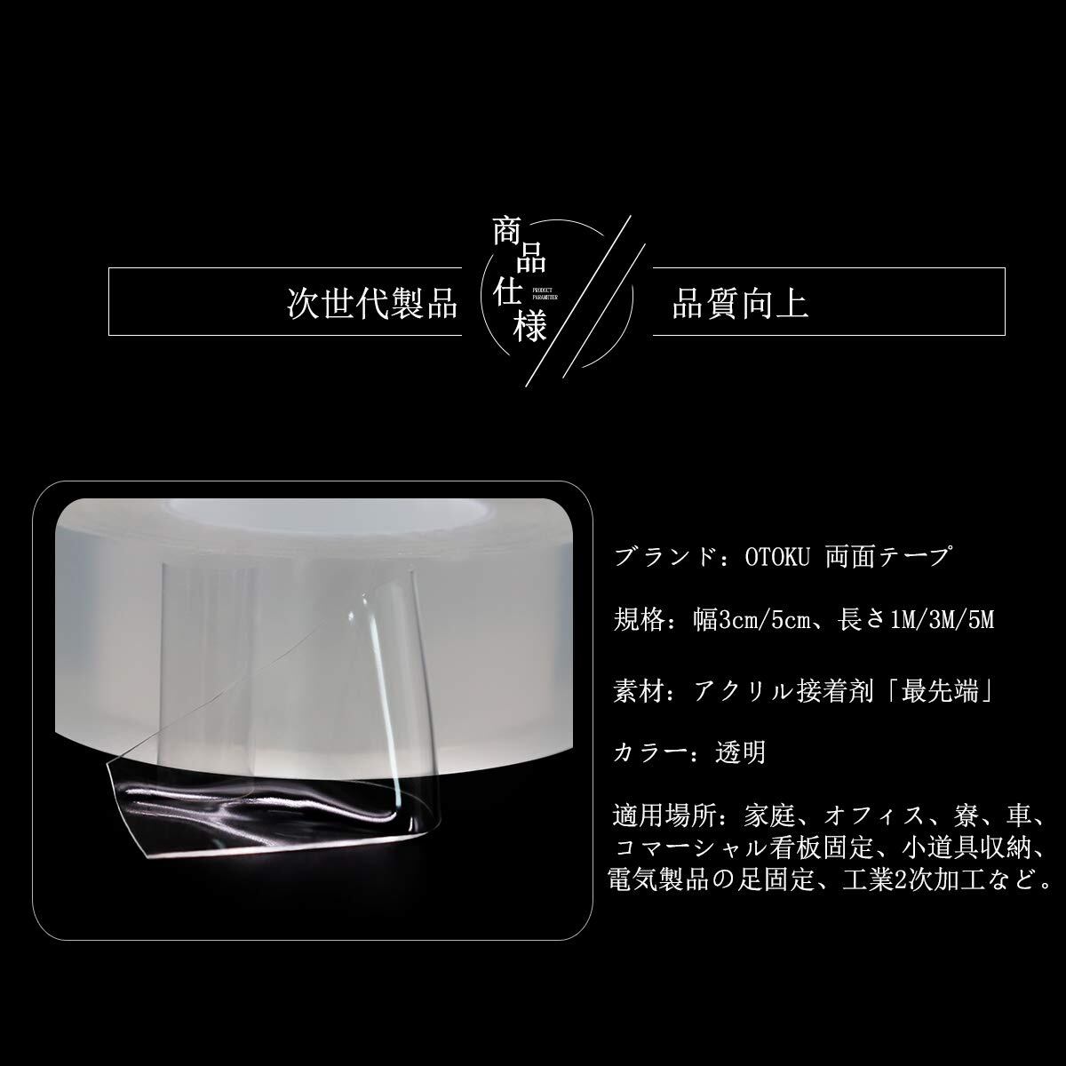 OTOKU 両面テープ 魔法テープ 超強力 のり残らず 繰り返し はがせる 防水 滑り止め 洗濯可能 多機能 多サイズ 家庭 オフィス 寮 学校 会社 工業用など (3cmx2mmx5m)