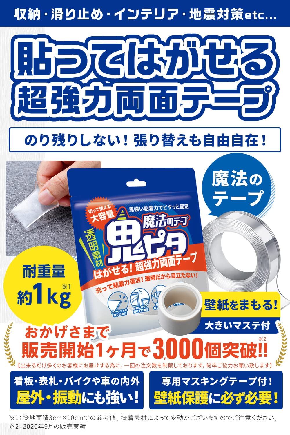 鬼ピタ!魔法のテープ 粘着力は鬼強く、綺麗に剥がせる両面テープ!