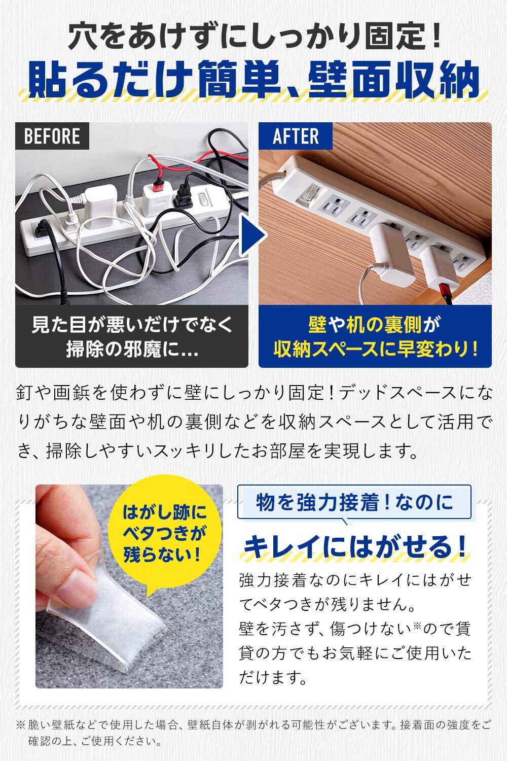 【使用上の注意】強力な 粘着力の為、柔らかい素材の 壁紙 などへ使用した場合、剥がせる際に粘着面を傷める可能性があります。粘着 面の素材・固定する物の大きさにより耐荷重は変動いたします。使用の際は、お客様の判断のもと十分注意してご使用願います。