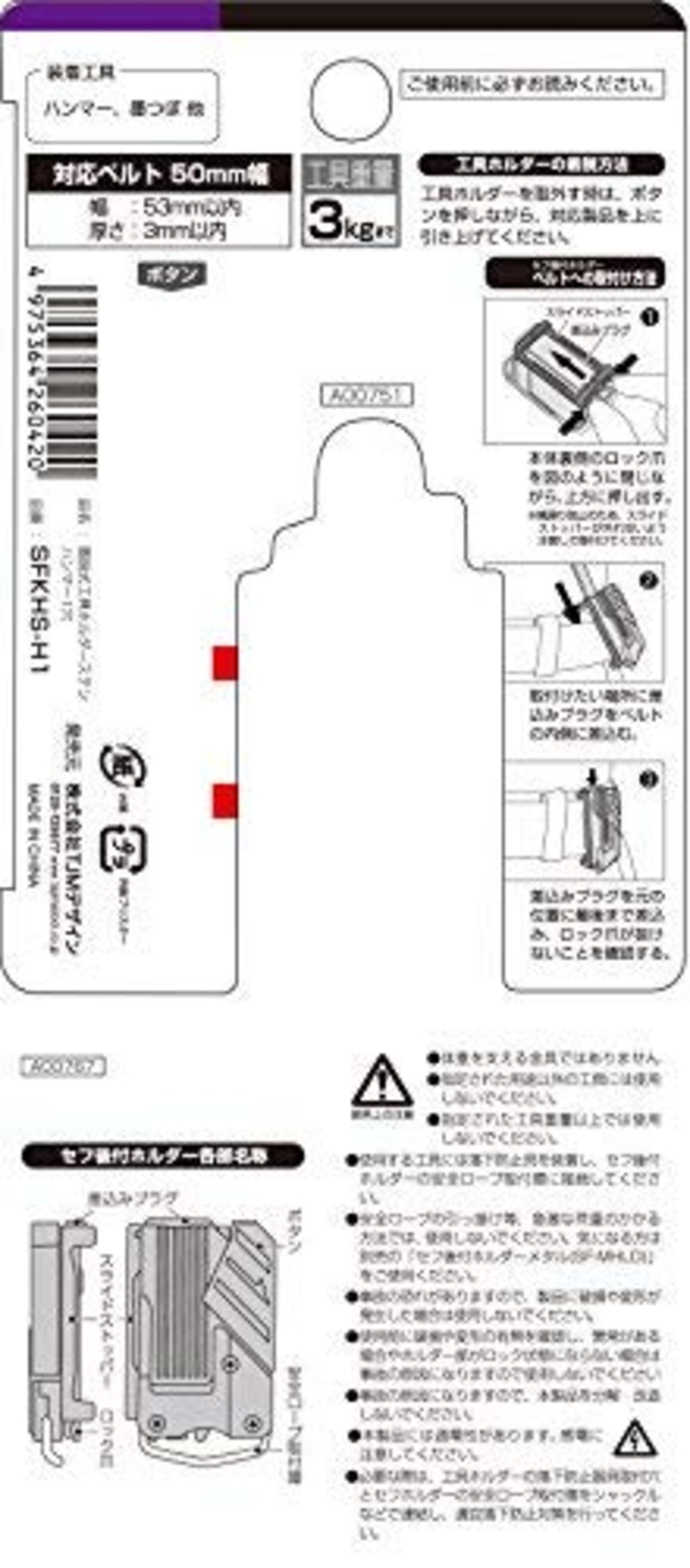 タジマ セフシステム 着脱式工具ホルダー 高耐久極太ステン ハンマー1穴 SFKHS-H1 着脱楽々 ベルトに後から装着可能 腰道具の組み換えが簡単 使う道具だけを選んで装着 腰の負担軽減 工具の落下防止