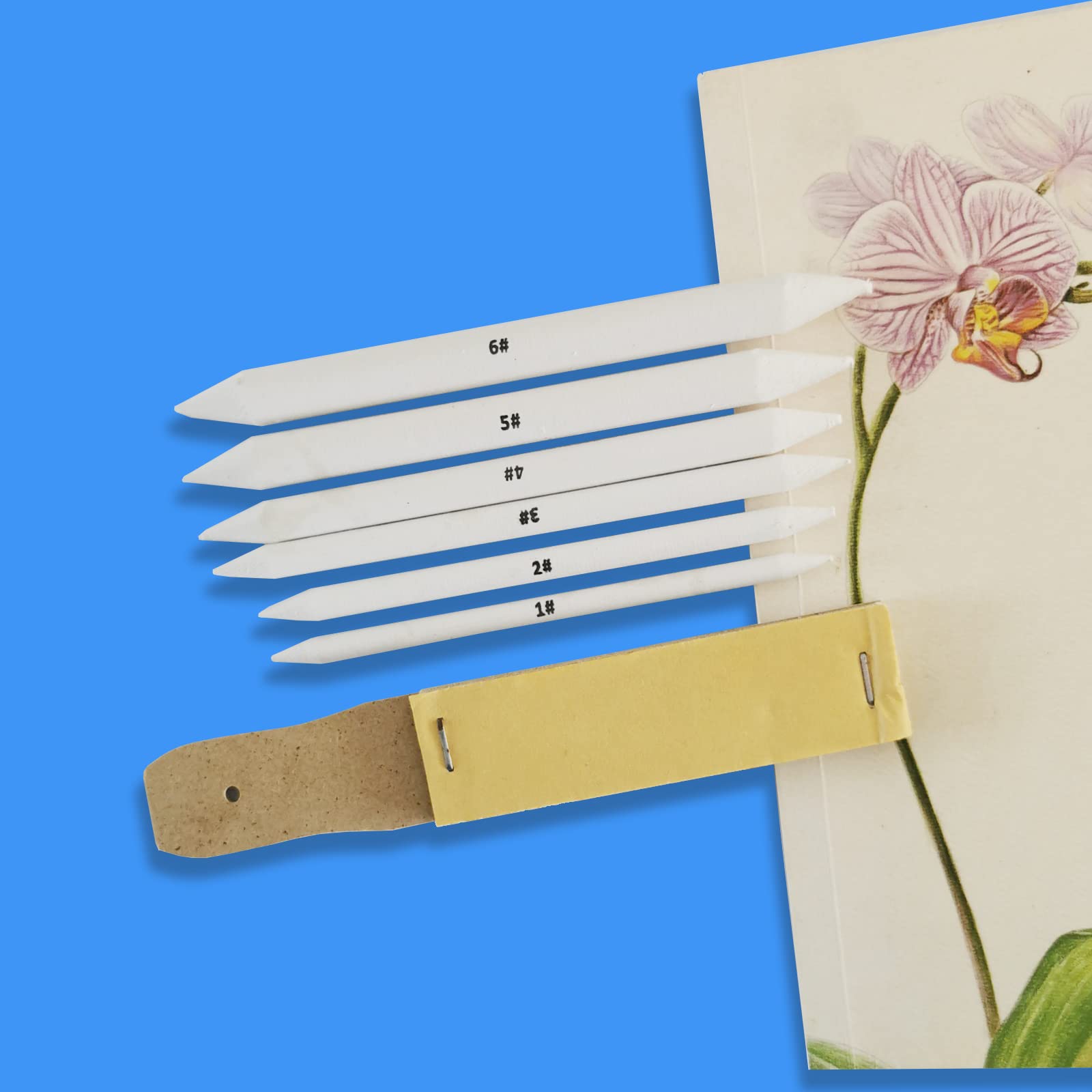 紙 擦筆 6本入り 6サイズ 紙ヤスリ 1本 サッピツ 両頭タイプ 鉛筆画 画材 木炭画 コンテ画 パステル画 デッサン イラスト 素描 美術 #1#2#3#4#5#6各1