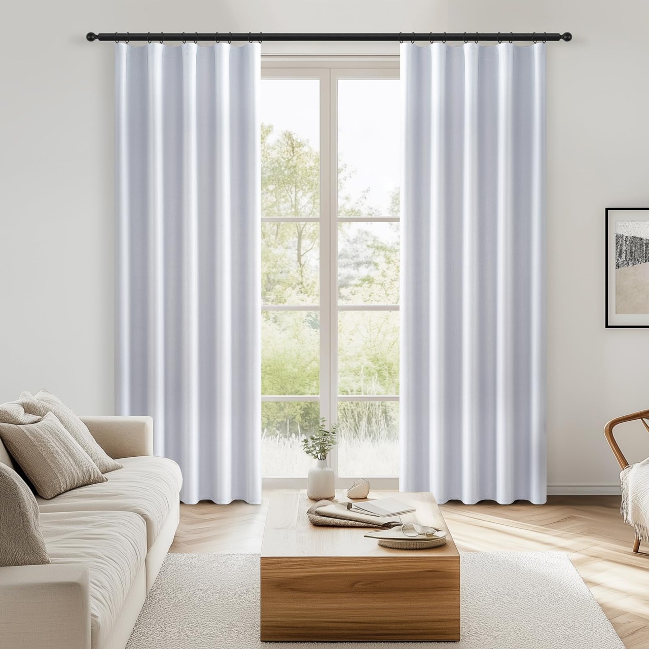 Topfinel カーテン 遮光 断熱 178cm丈 2枚組 グレーホワイト フィンランドスタイル フック付き 寝室用 リビング 間仕切り 目隠しカーテン 防音
