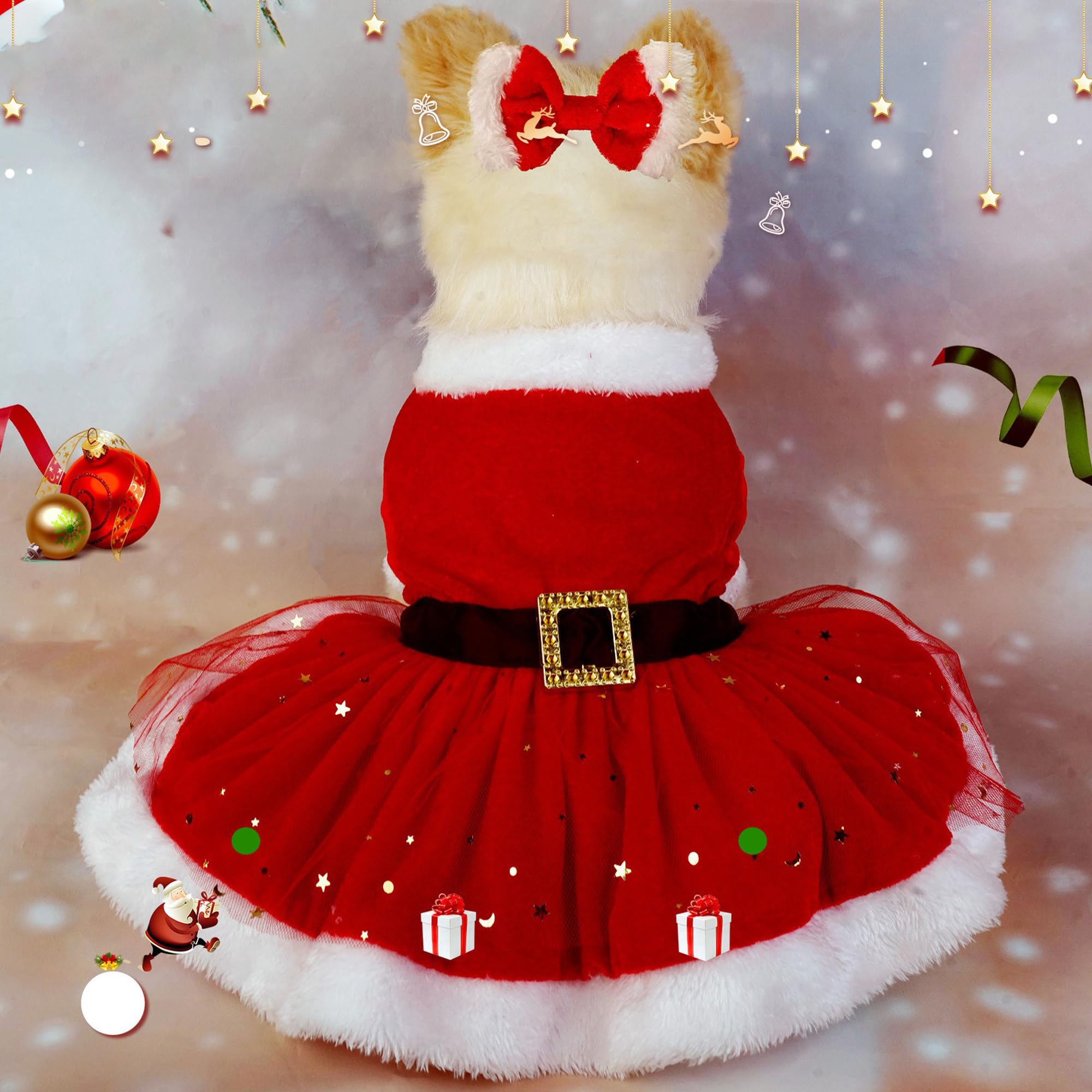 DERAYEE クリスマス 猫の服 犬服 小型犬 帽子 防寒 保温 サンタ 秋冬服 二足歩行 可愛い ペット用品 仮装 コスチューム (M, クリスマスカート)