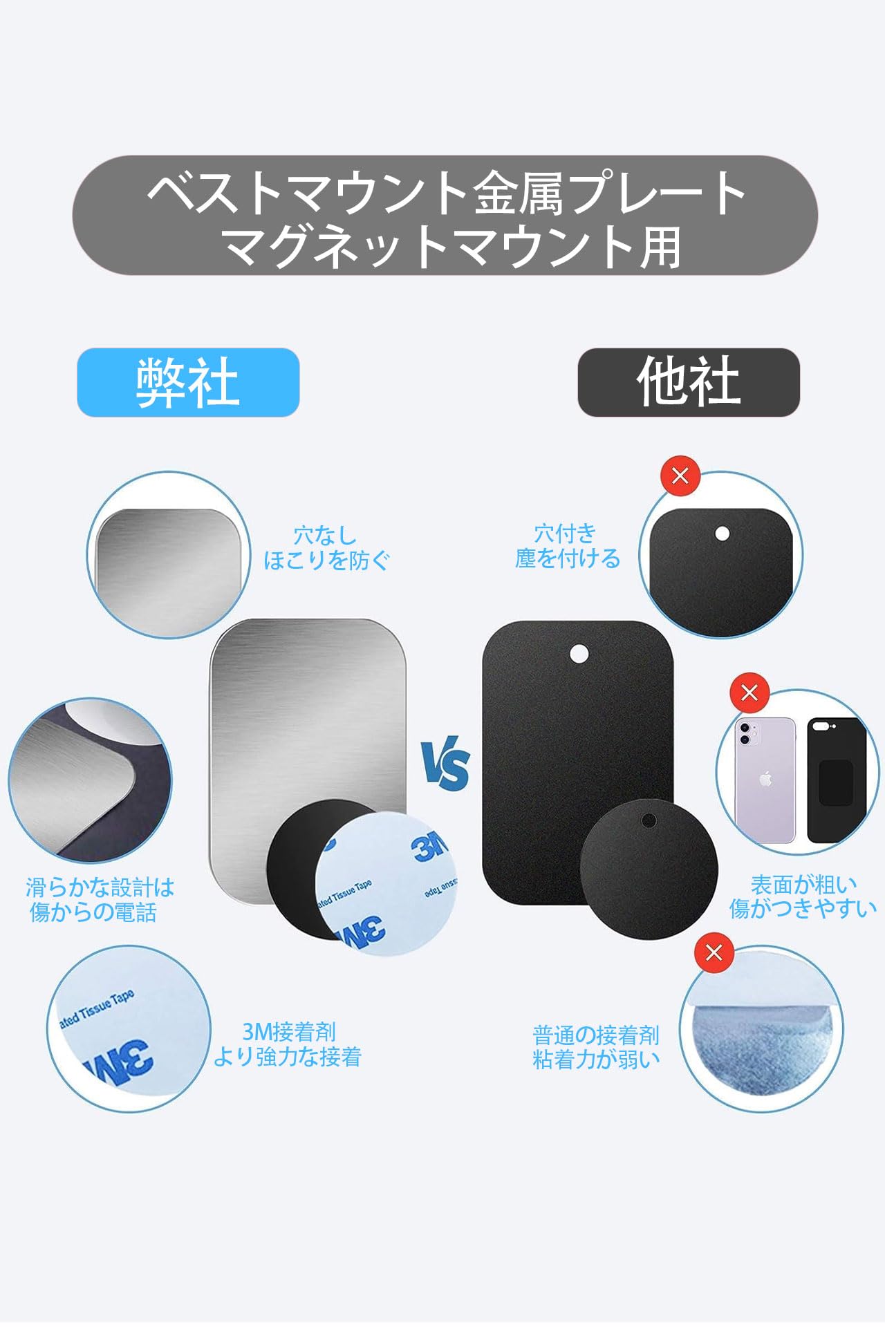 【強力な接着力】金属板の両面にオール両面テープを使用しており、非常に強力な接着力をします。揺れる車内でもスマートフォンをしっかりと固定し、滑りや落下を防ぎます。