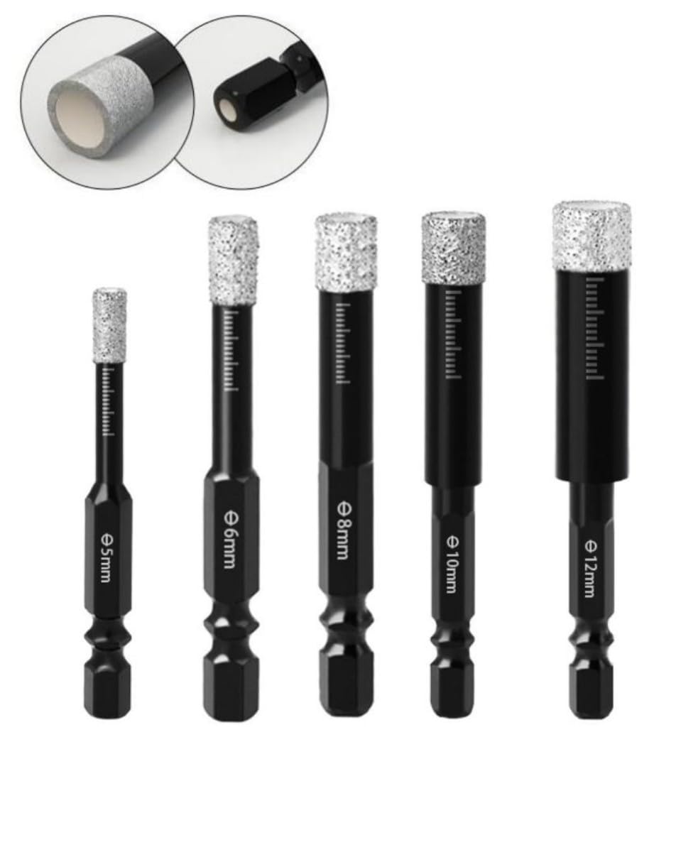 【セール】ダイヤモンドホールソー 六角軸 真空ろう付けされたダイヤモンド シャンクが付いている乾燥した陶器穴あけドリルのセット 6本 5mm/6mm/8mm/10mm/12mm コアビット ガラス、セラミック大理石花崗岩タイル用ホールソー | GIGATERA