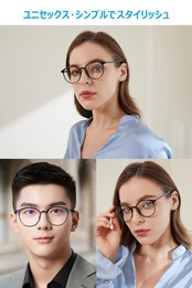 【ユニセックス・シンプルでスタイリッシュ】:フレームはシンプルなデザインで、お顔の形がキレイに見える、男性も女性も着用できる!丸みを帯びたテンプルで顔にフィットし、柔軟なヒンジデザインでどんな顔型にも似合う!