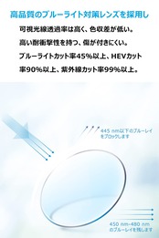 【ブルーライトカット・UV紫外線カット・放射線防護】:高品質のブルーライト対策レンズを採用し、可視光線透過率は高く、色収差が低い。高い耐衝撃性を持つ、傷が付きにくい。眼に有害な光を効果的にカットします(ブルーライトカット率45%以上、HEVカット率90%以上、紫外線カット率99%以上)。効果的に目の疲れを緩和し、視力を保護し、睡眠の質を向上します。