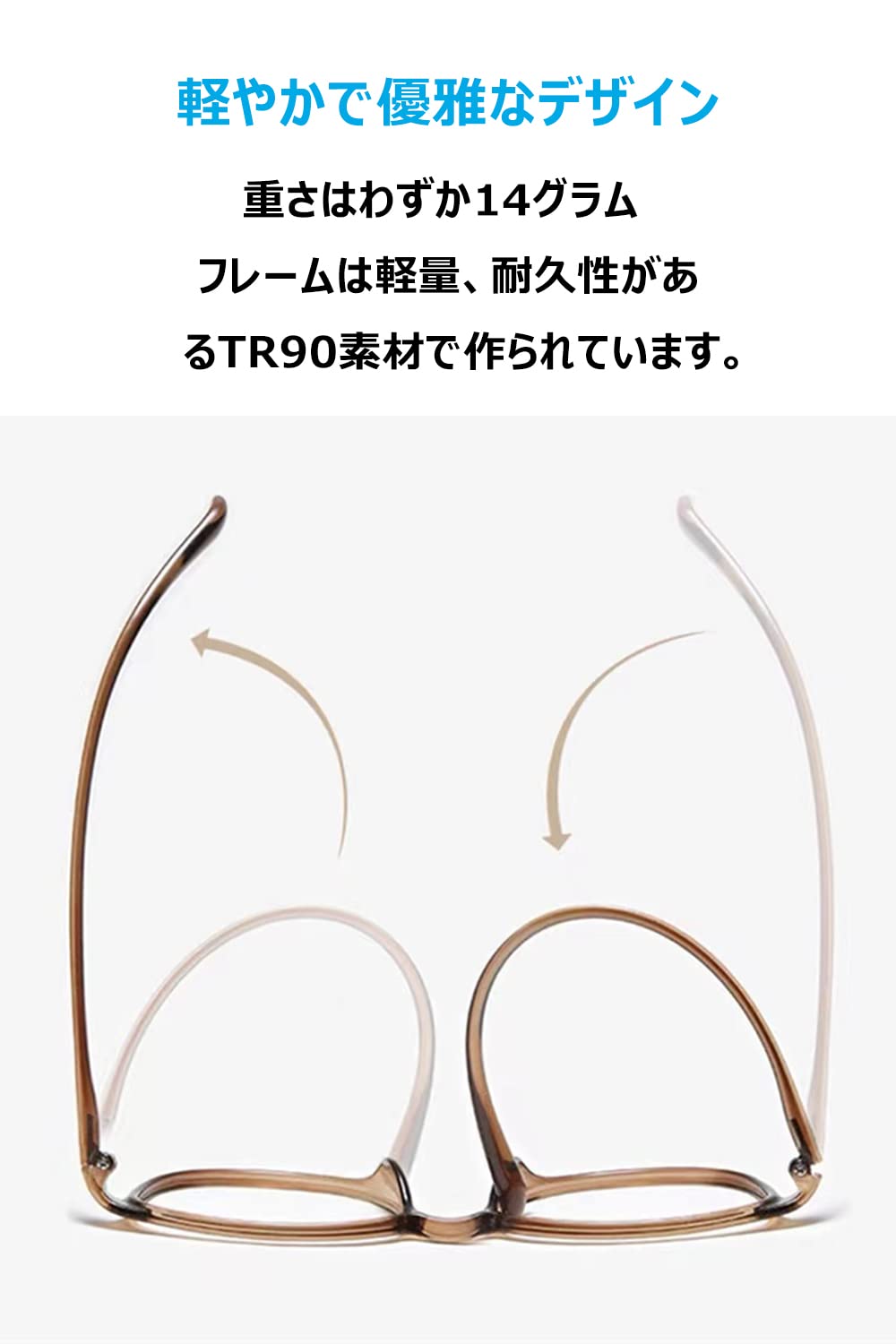 【軽やかで優雅なデザイン】:重さはわずか14グラム。フレームは軽量、耐久性があるTR90素材で作られています。薄くて、軽い!スタイリッシュなデザインで、快適な着用感を実現しました。長時間着用しても、耳や鼻梁には圧迫感がありません!エレガントで上質感のあります。