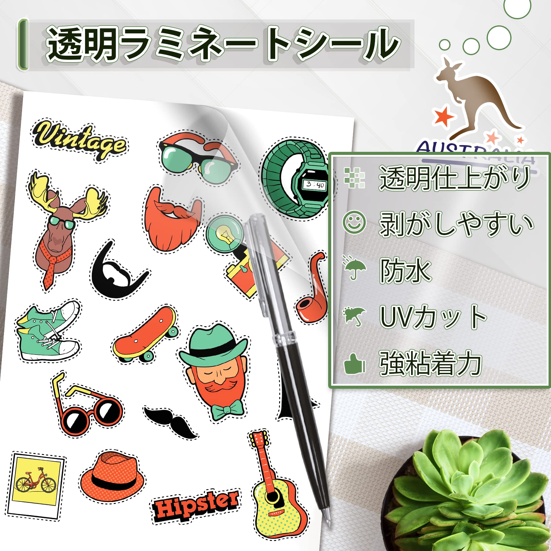 印刷できない透明ラミネートシール、シール厚さ:0.1mm、総厚:0.25mm、A4-15枚、ノーカット