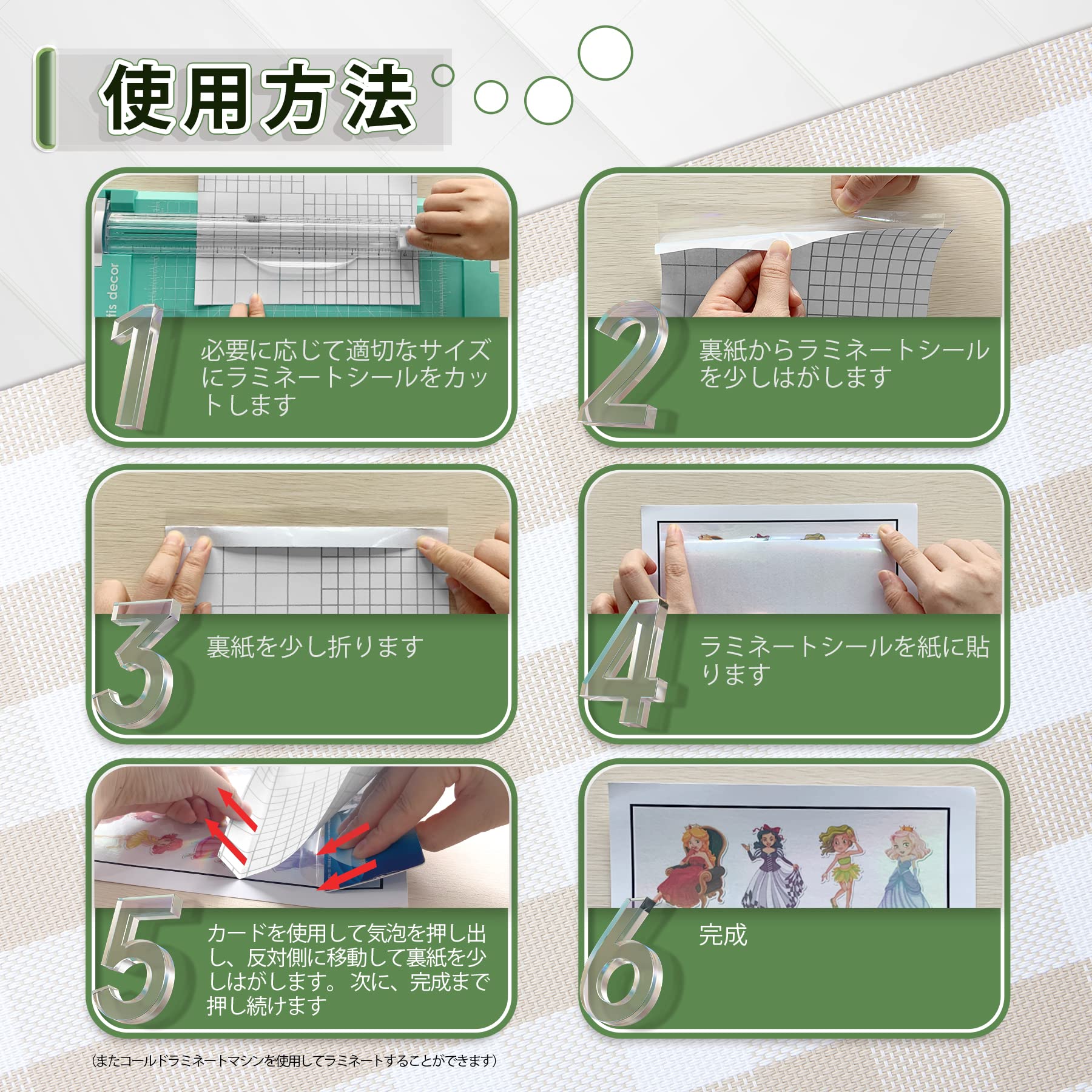 このシールはラミネーター不要印刷物をラミネートすることができます、ただ保護するためのラミネートシールです、印刷はできません