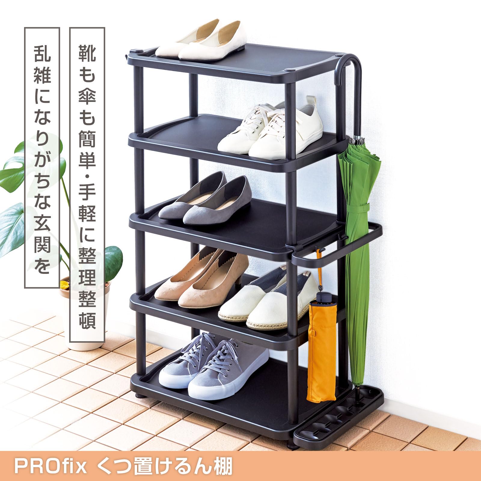 天馬 組立が簡単で玄関の省スペースを有効活用できるシューズラック くつ置けるん棚 5段 傘も一緒に収納できるスリム靴箱 シューズボックス 靴棚 【簡単組立】【幅36×奥行31×高さ85cm】