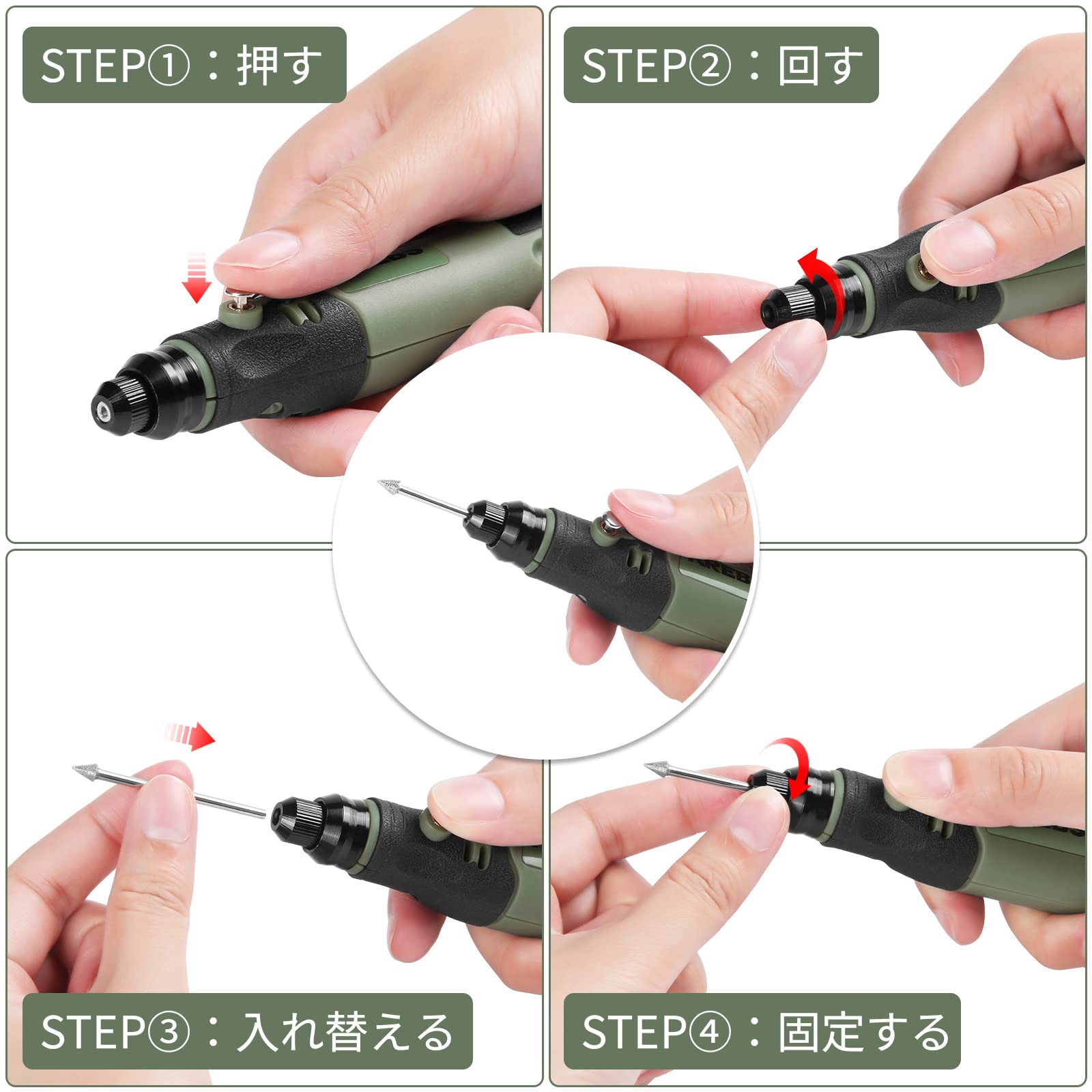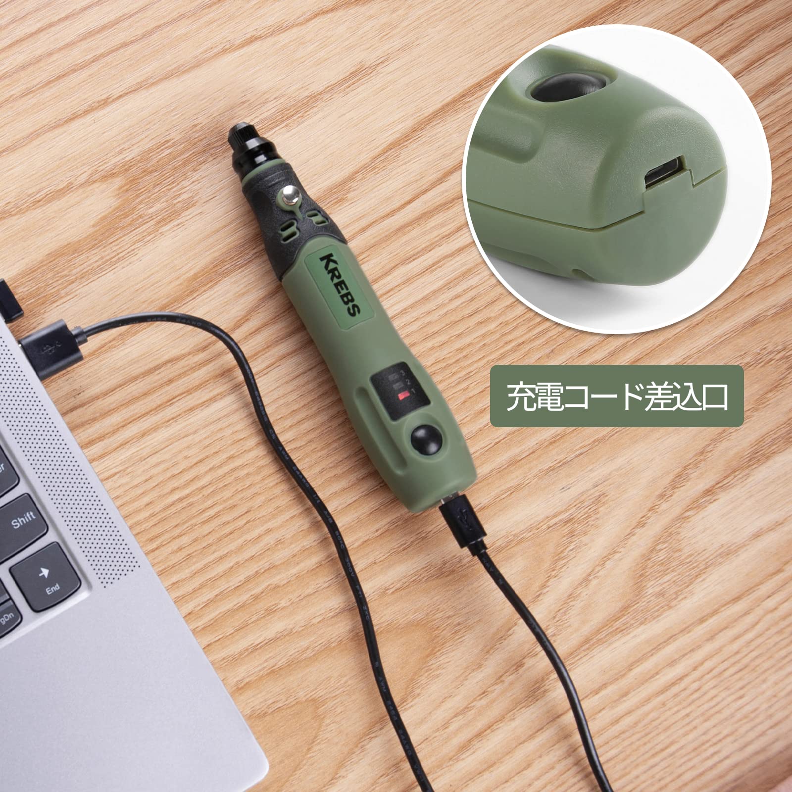 KREBS(クレブス) 充電ミニルーター(リューター)3.6V コードレス 超軽量 3段変速 最高15000rpm ビット31点セット 彫刻/研磨/切削/穴あけ/汚れ落とし/つや出し