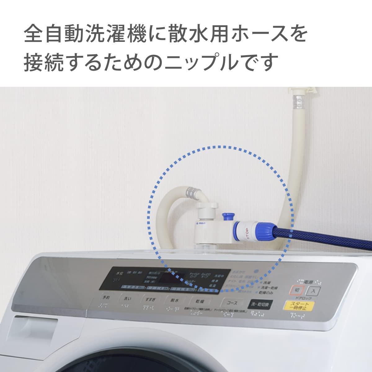 ●全自動洗濯機から散水用に分水できます。●各の全自動洗濯機に対応しています。●万が一、ニップルからホースが外れた場合、ホース内に残った水が噴出しない止水弁付きです。●全自動洗濯機用。
