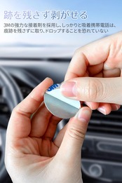 【強力な粘着力】3M社製の超強力両面テープを使用し、粘着力がとても強いので、揺れる車内でもしっかりとスマートフォンを固定でき、スマートフォンのズレや落下を防ぎます。 また、スマホの機種変更や複数端末をお持ちの場合の金属プレートの交換もとても簡単です。
