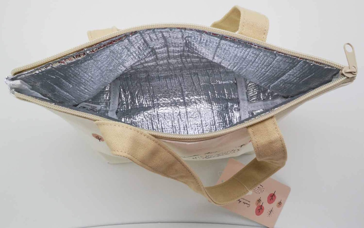 素材:本体・持ち手/綿100%、内側/ポリエチレン・アルミフィルム