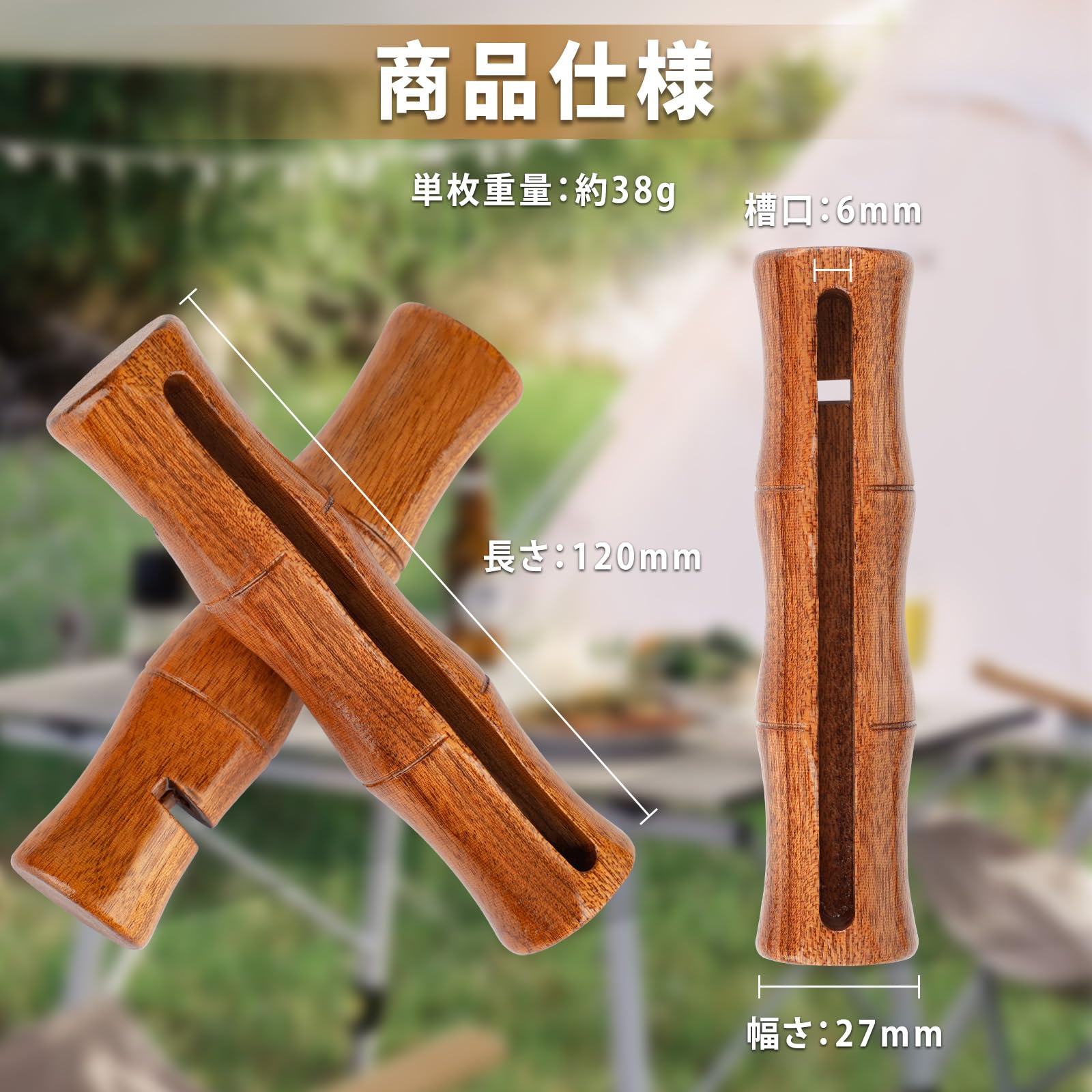【マルチグリドル 取っ手 木製】サイズ:長さ:120mm、幅さ:27mm;重量:約76g(2本あたり)。この最新改良型の取っ手カバーは、横滑り防止のデザインを採用して、JHQ社製「鉄板マルチグリドル33cm」専用に設計されております。