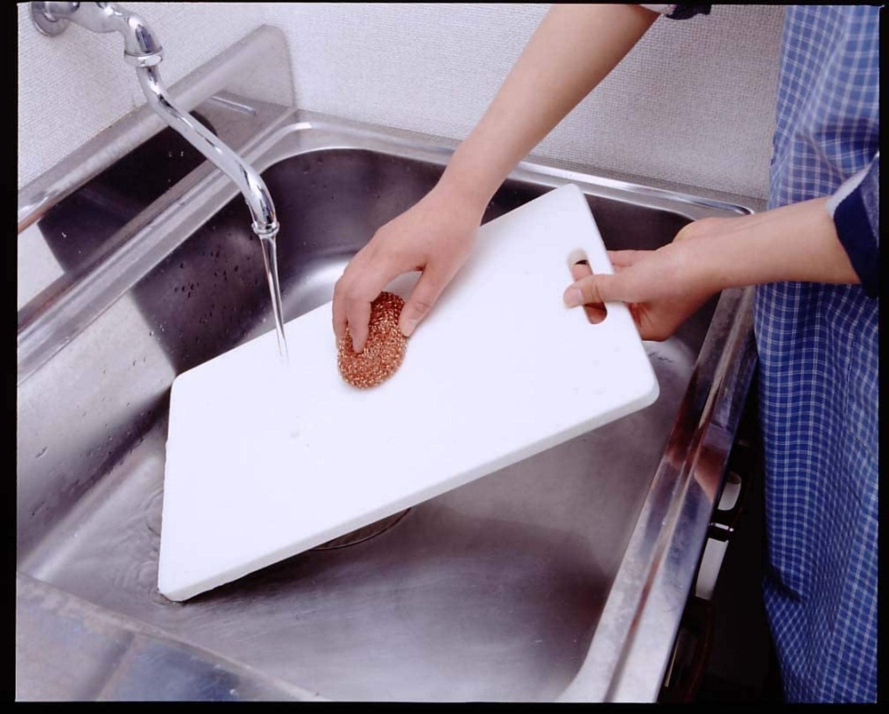 たわしとしてブラッシング。まな板の汚れ落としや、中華鍋などの鉄鍋類などに大変便利です。食器からバス・トイレの洗浄に。さらに銅イオンの力で、汚れがつきにくくなる。