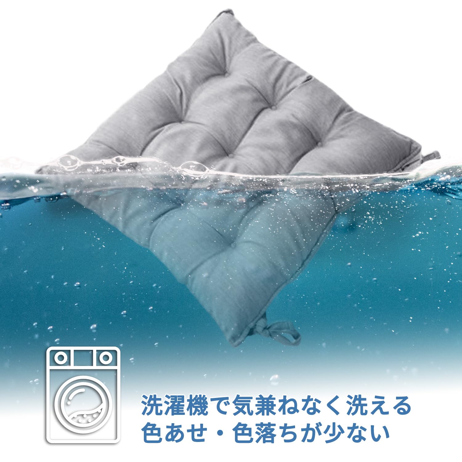 【特価】AIFY 座布団 椅子 クッション 厚め 紐付き 4枚セット ふわふわ 麻風 無地 オールシーズン シートクッション ダイニングチェア用 42x42x5cm グレー 4枚セット | GIGATERA