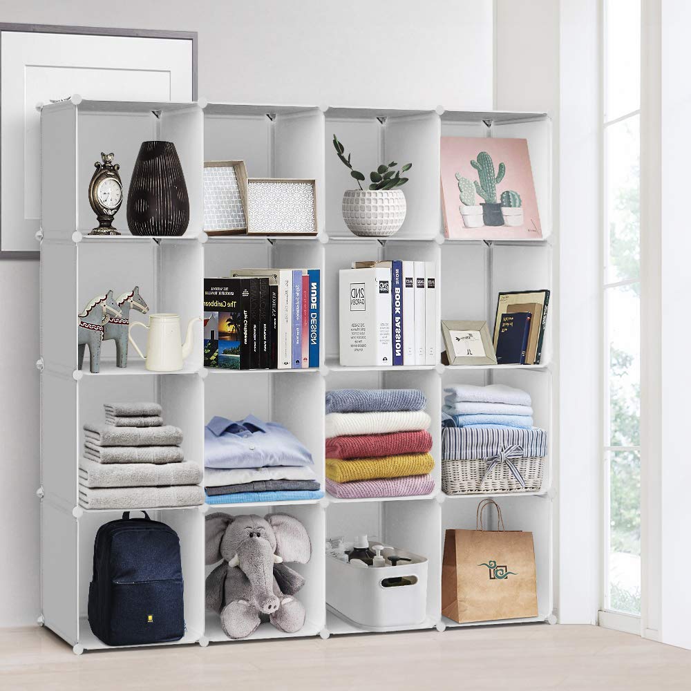 【特価在庫】Vacplus 収納棚 大容量 収納ラック 組み立て式 整理棚 収納ボックス 本棚 衣類収納ボックス 多用途 耐久性 省スペース 収納便利 ブラック 1個幅30×奥行30×高30㎝ 16ボックス (ホワイト) | GIGATERA