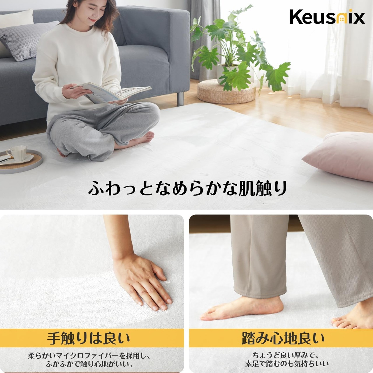 【優れた肌触り-フランネルラグ】極細繊維で作られたフランネル素材のラグマットはソフトでしなやか、滑らかな感触を実現します。肌ざわり良いし、短毛タイプのラグマットなので、ネコや犬の毛が付いても、掃除機で簡単に取れます。