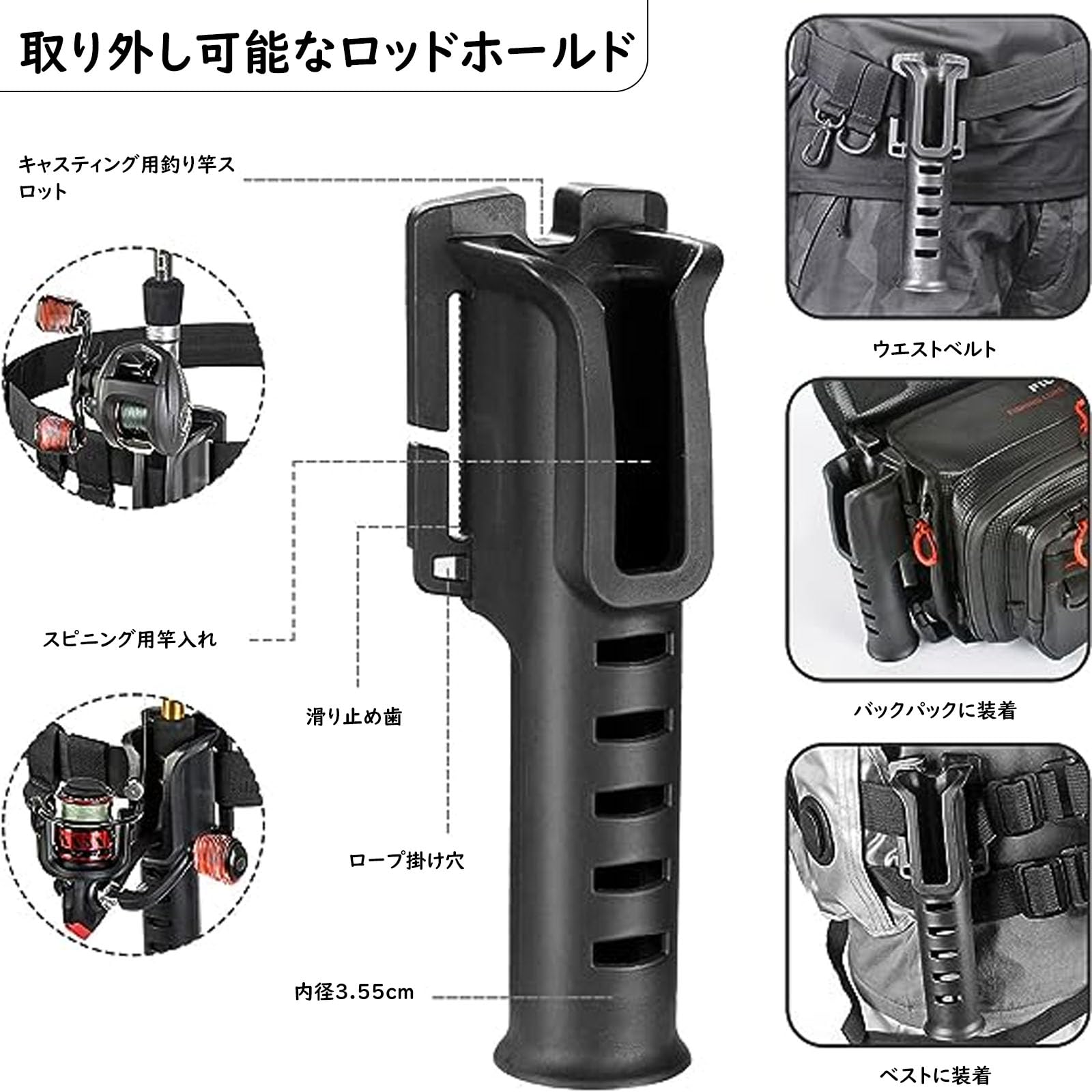 ロッドホルダー: 高品質のPBT樹脂にPVCラバーコーティングを施し、より丈夫で長持ちします。キャスティングやスピニングロッドに最適、適用ロッドグリップ最大直径:1.38 /3.5cm