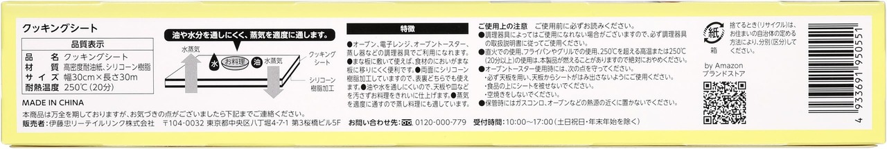 両面シリコーン樹脂加工で食材がくっつきにくく、熱に強いのでオーブン・電子レンジで使用可能です。 ※250℃20分まで。