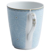 やさしく上品なブルーの地色に花をモチーフにしたマグカップ。