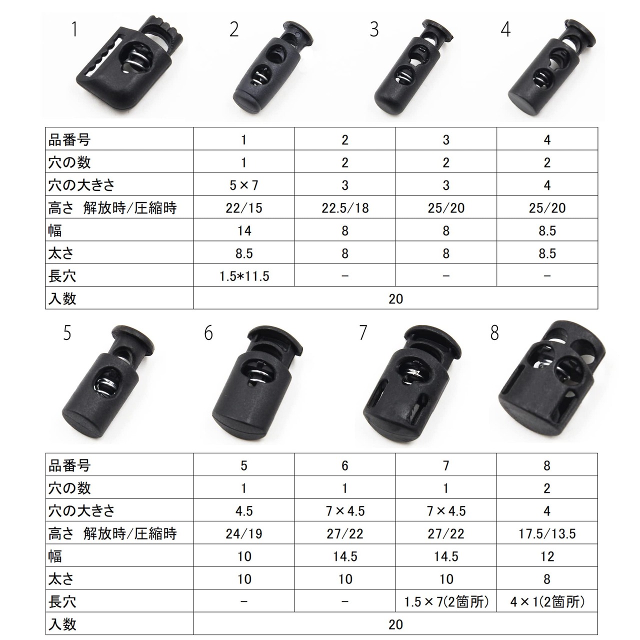 主な用途:パーカーやジャージ、ウィンドブレーカーの紐止め・ゴムや紐の長さの調整、コードストッパー、コードエンド、コードロック、シューズクリップ、靴紐、リュックの紐の調節等