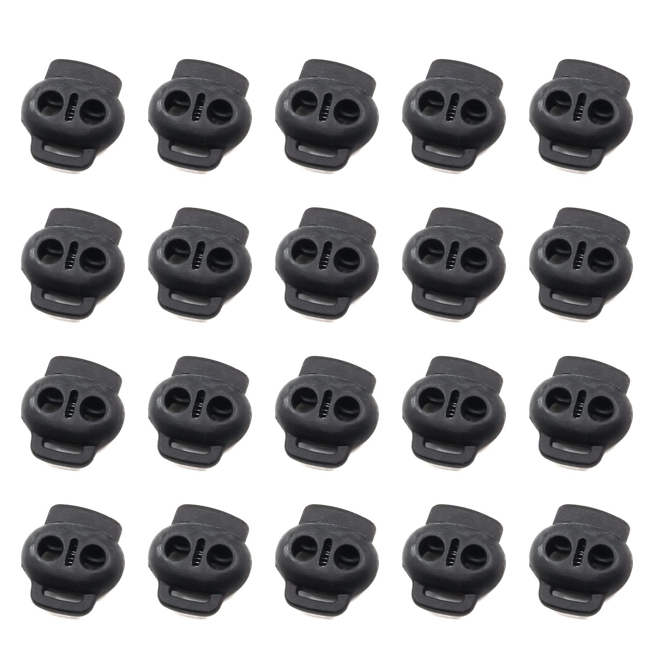 seasta 紐/コードストッパー 黒色 【 穴径 5mm 高さ 20mm 丸型 長穴付き 2つ穴 横型 】 20個