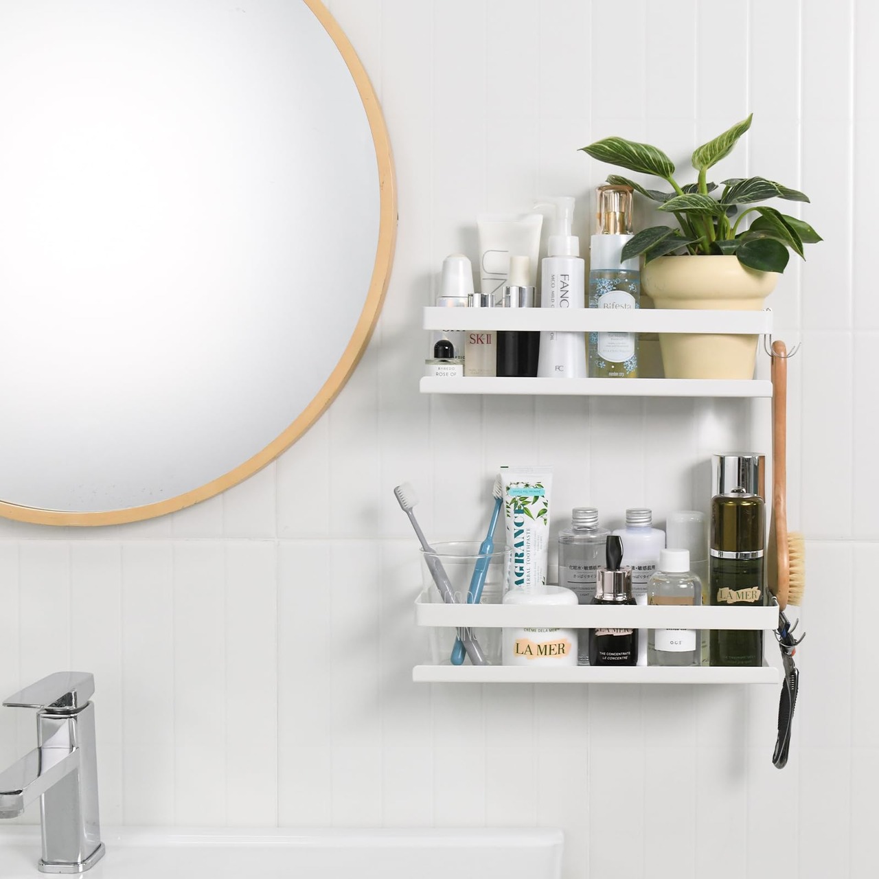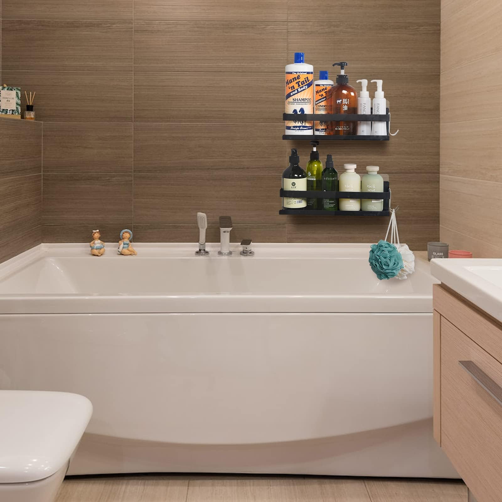 バスルーム ラック 浴室用ラック 強力固定 お風呂の壁に ステンレス シャワーラック 水切り 風呂場洗面所収納 フック