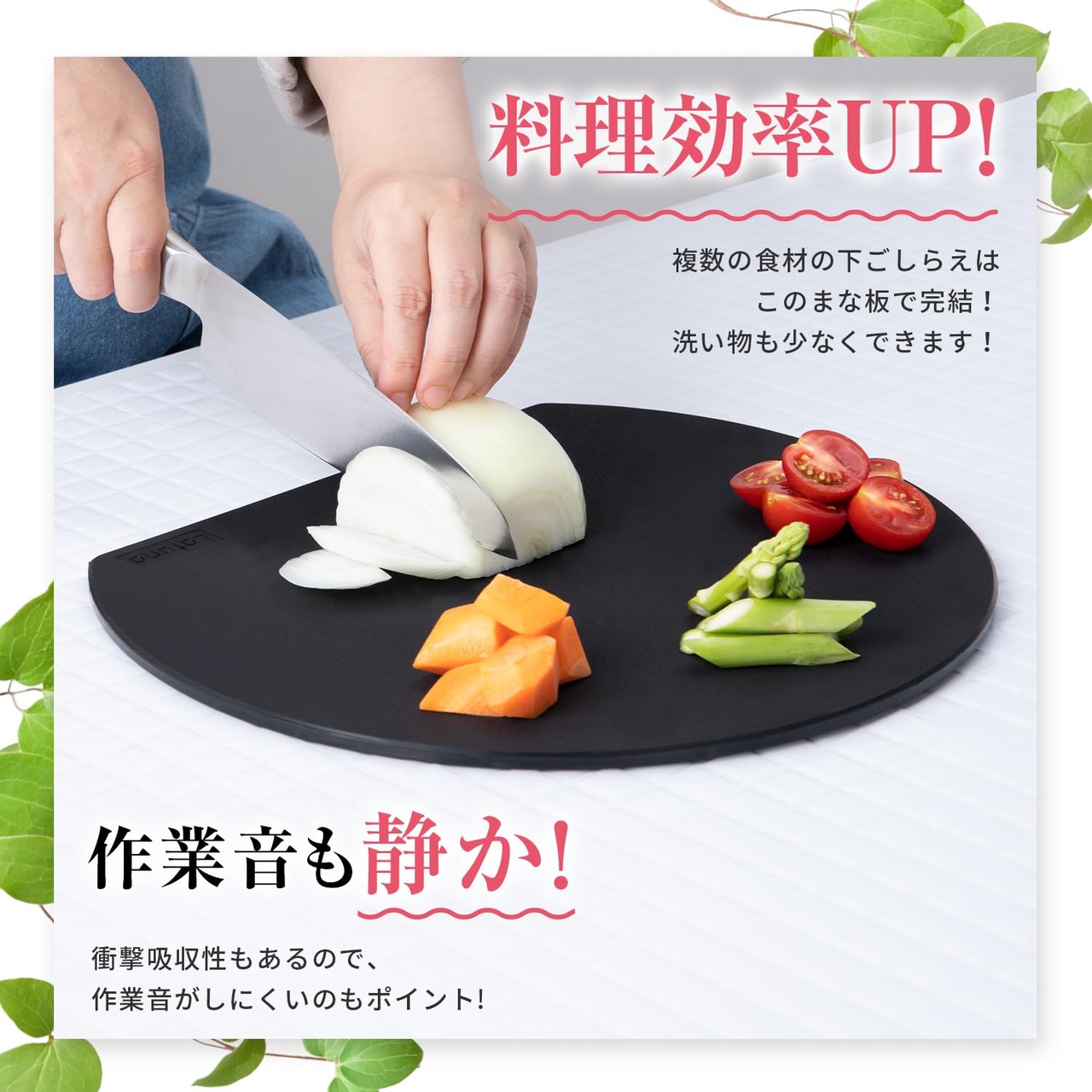 【料理研究家監修】 まな板 黒 半円 丸い 大きい ゴム 丸 食洗機対応 抗菌 キャンプ エラストマー 俎板 【Latuna ラチュナ】 カッティングボード まないた 多機能 アウトドア (ブラック 32.5x27.5cm)