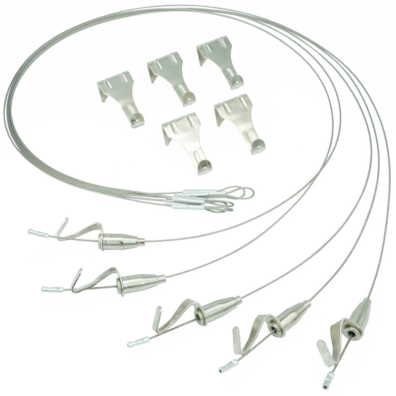 [ネセクト] ピクチャーレールワイヤーセット ステンレス製 スライド式フック高さ調整可能 国内強度試験済 (1.0m ワイヤー5本 セット)