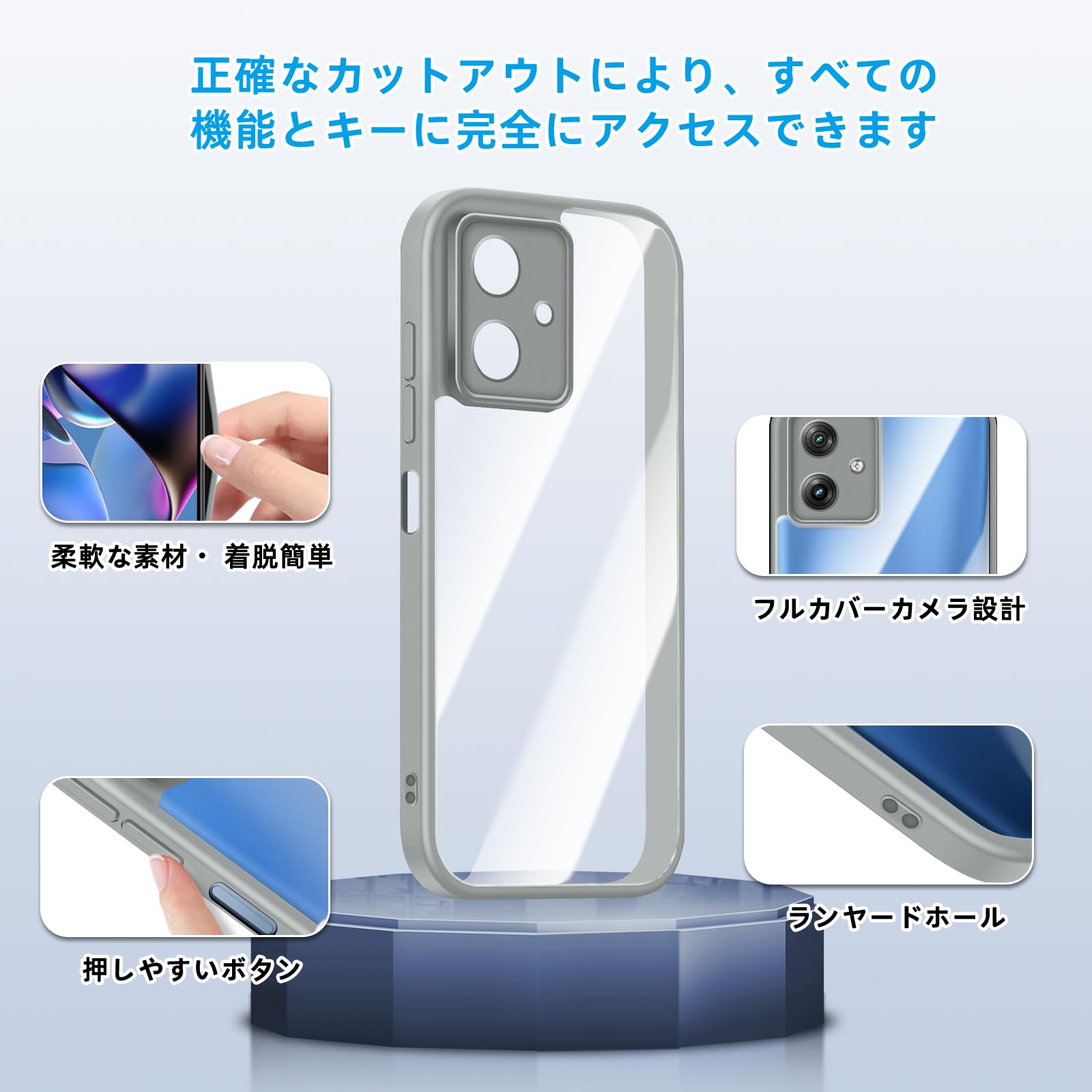 【在庫処分】[SinRenn] Motorola Moto G64 5G/Moto G64Y 5G ケース クリア 360°全面保護 薄型 レンズ保護 スマホケース 耐久性 透明PC背面+ソリッドカラー TPUフレーム 耐衝撃 携帯カバー 黄変 擦り傷防止 米軍MIL規格 落下防止 携帯ケース モトローラg64 5G/g64Y 5G/g54 5G スマホカバー (グレー) | GIGATERA