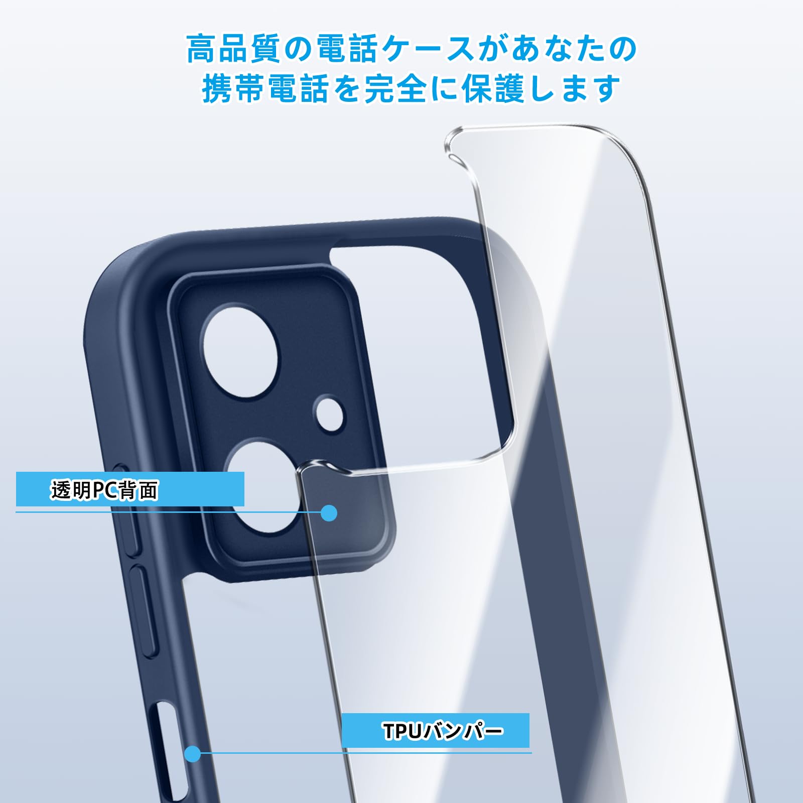 [SinRenn] Motorola Moto G64 5G/Moto G64Y 5G ケース クリア 360°全面保護 薄型 レンズ保護 スマホケース 耐久性 透明PC背面+ソリッドカラー TPUフレーム 耐衝撃 携帯カバー 黄変 擦り傷防止 米軍MIL規格 落下防止 携帯ケース モトローラg64 5G/g64Y 5G/g54 5G スマホカバー (ブルー)