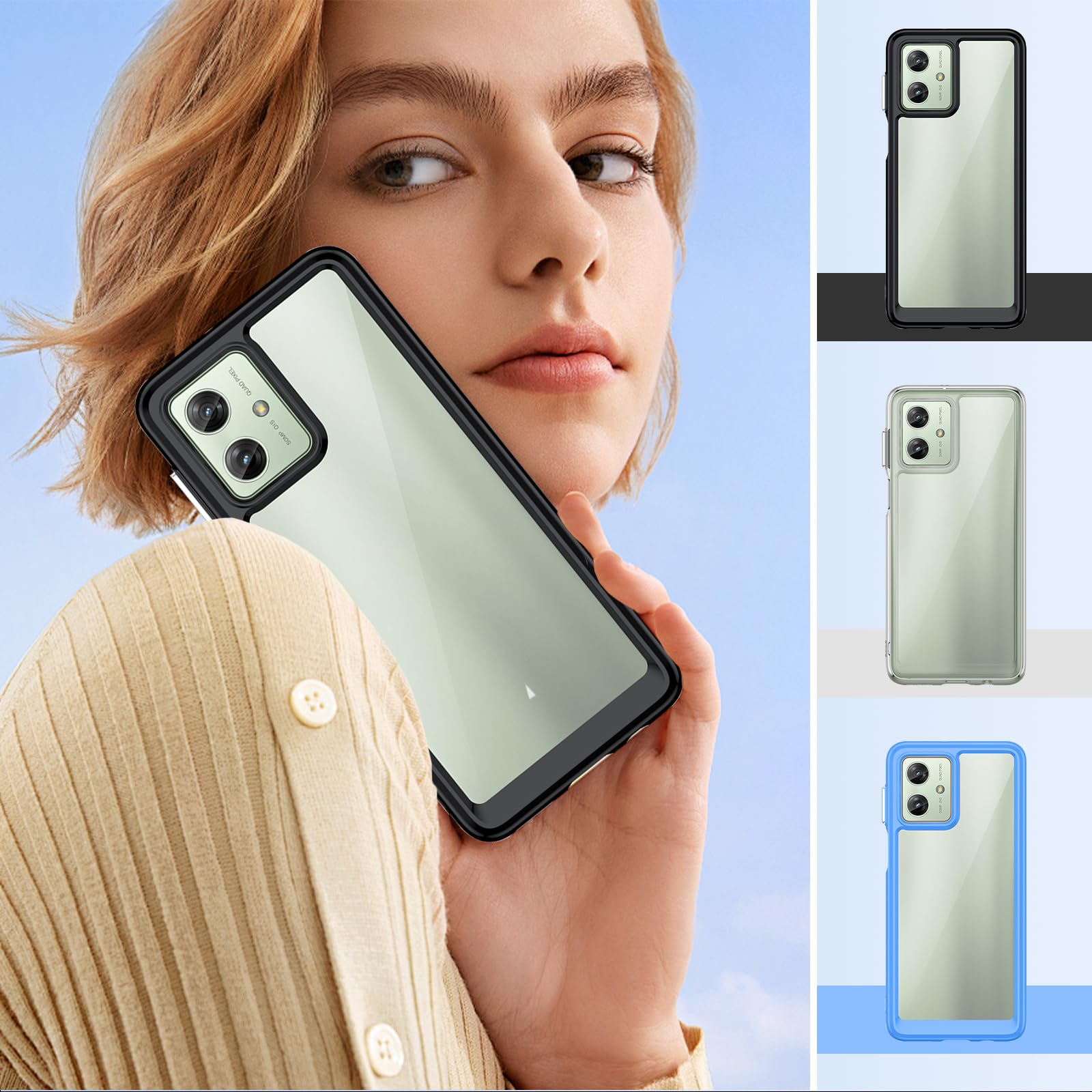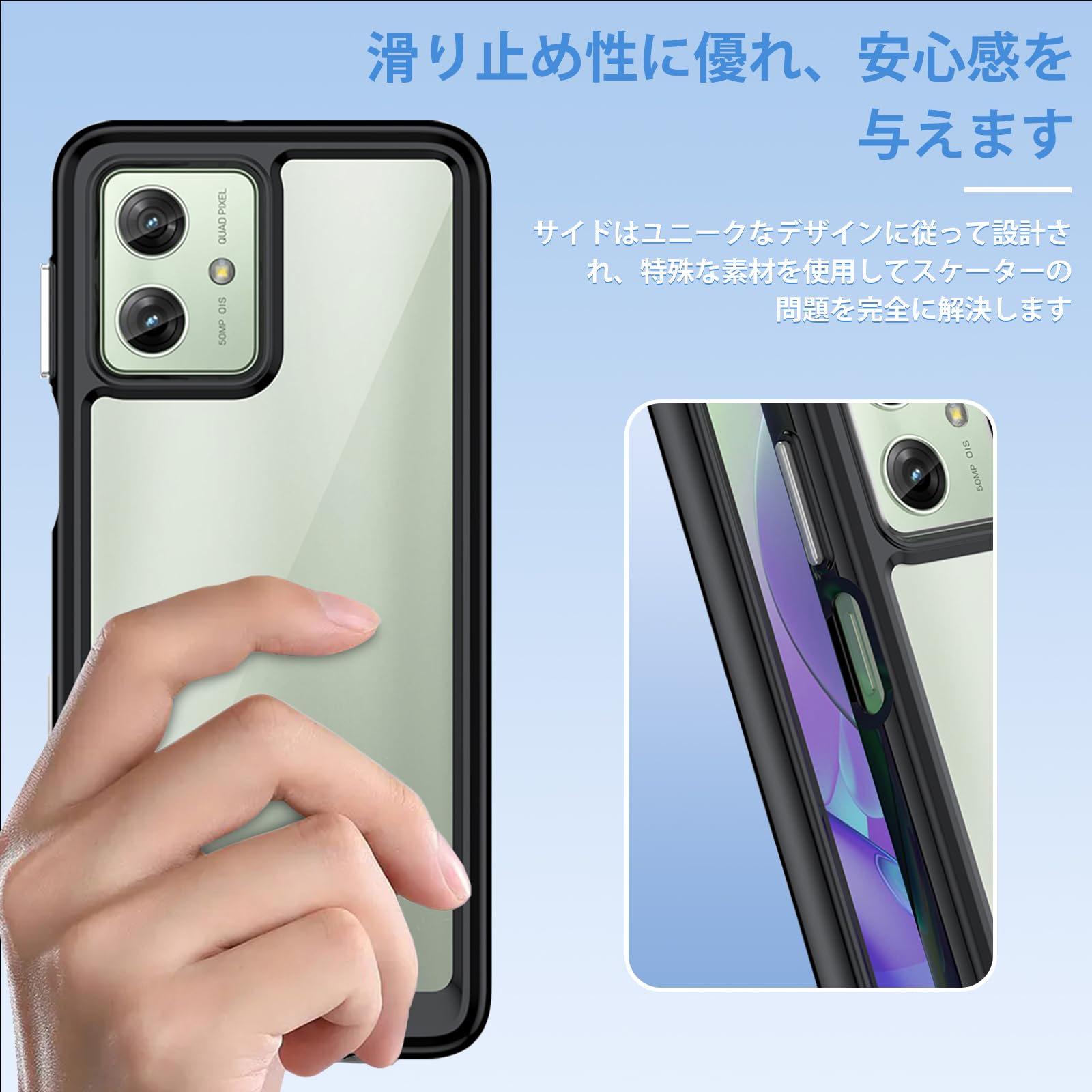 [高品質TPU+PC素材] Motorola(モトローラ) Moto G64 保護ケースのフレームはTPU素材で作られており、保護ケースの背面パネルはPC素材で作られています。耐久性に優れ、外側部分がある程度の衝撃を吸収し、側面の滑り止め設計でを防ぎます。特殊加工を施し、より透明度が高く、指紋が付きにくく黄ばみを防ぎます。適度な柔らかさと弾力があり、手に馴染みやすく滑りにくいです。硬すぎず柔らかすぎない素材なので装着しやすくしっかりと固定できます。ケースの背面は透明で透明度が高くて、ファッショナブルで独特な輝きを放ち、シンプルで高級感が溢れています。特殊な酸化防止処理により黄変しにくく、透明感を長期間維持します。