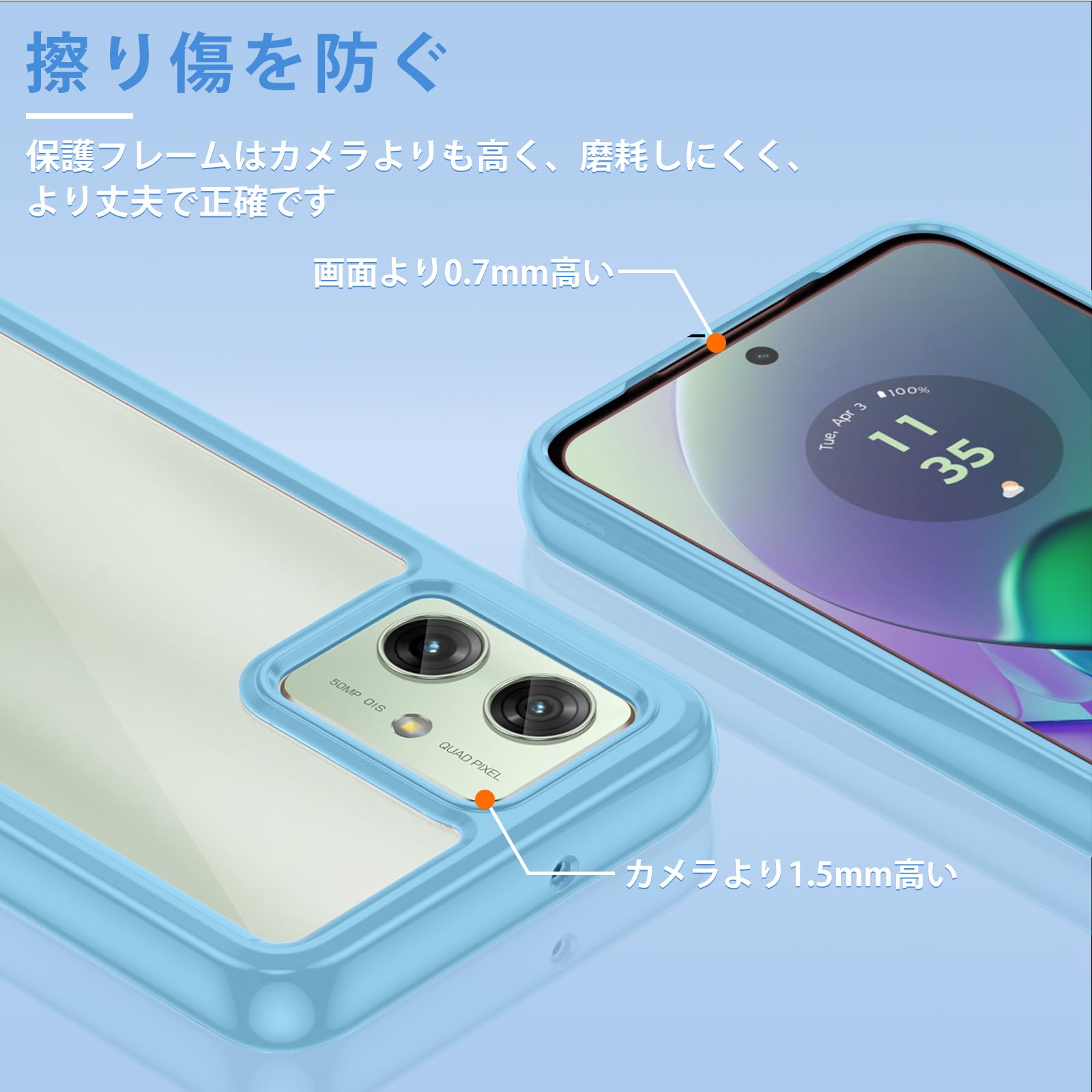 [KeeFos] ケース Motorola Moto G64 5G/Motorola Moto G64Y 5G 用 保護カバー TPU+PC素材 スマホケース 透明カバー 耐久性 耐衝撃 黄ばみ防止 持ち運びやすいケ ストラップホールあり 米軍MIL規格 指紋防止 落下防止 保護ケース モトローラg64/モトローラg64y 用 (ブルー)