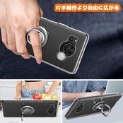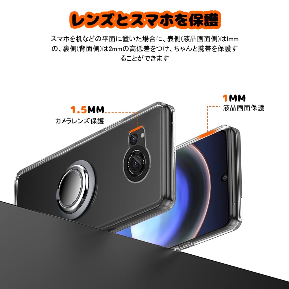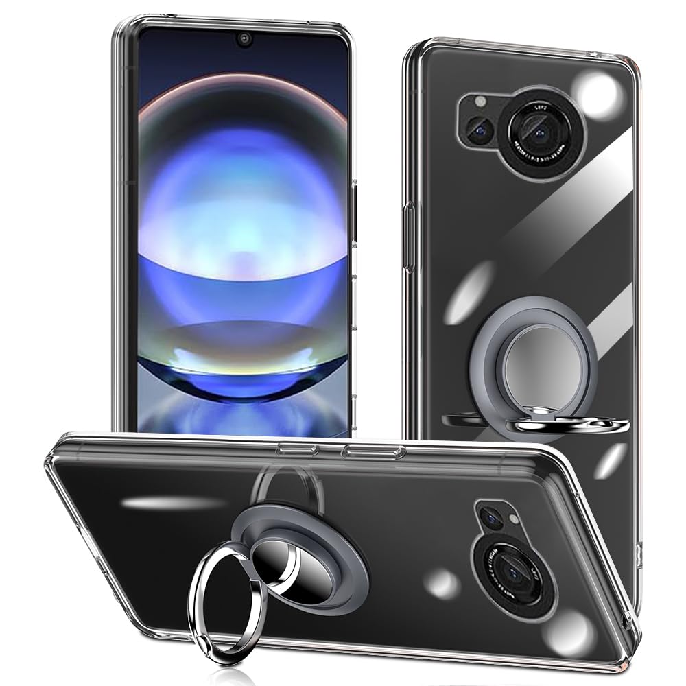 Tukudilu AQUOS R8 ケース SH-52D リング付き 透明 アクオス R8 スマホケース リング クリア シリコン 薄型 スタンド機能 耐久 滑り止め