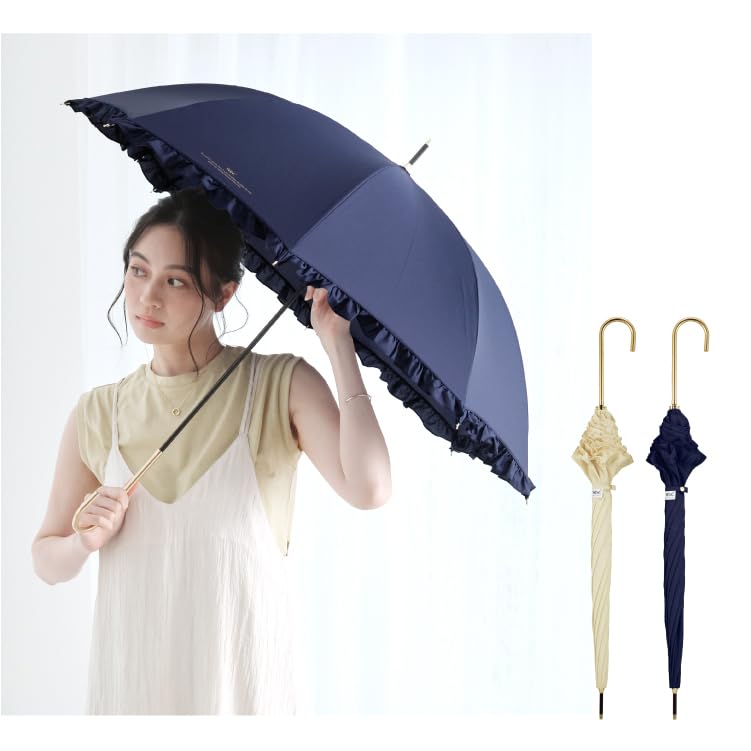 Wpc. 雨傘 フェミニンフリル ネイビー 長傘 58cm レディース 晴雨兼用 大きい 可愛い クラシカル ゴールドハンドル おしゃれ 可愛い 女性 通勤 通学 6181-02-001