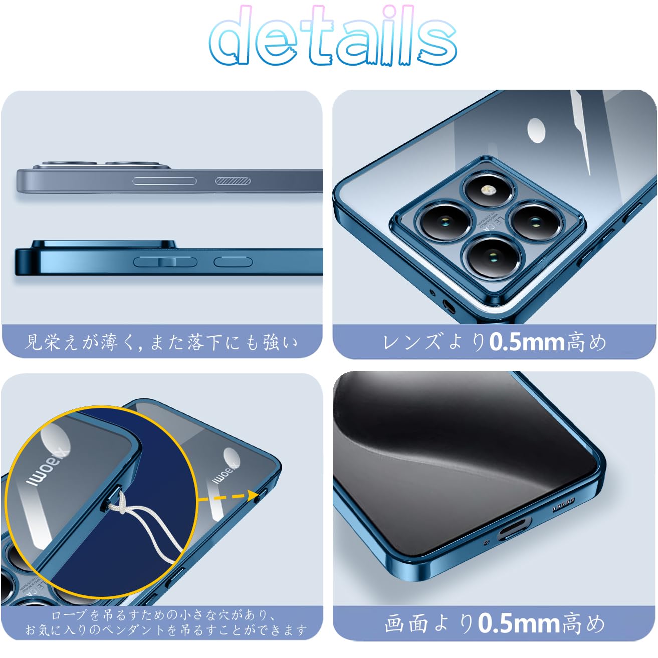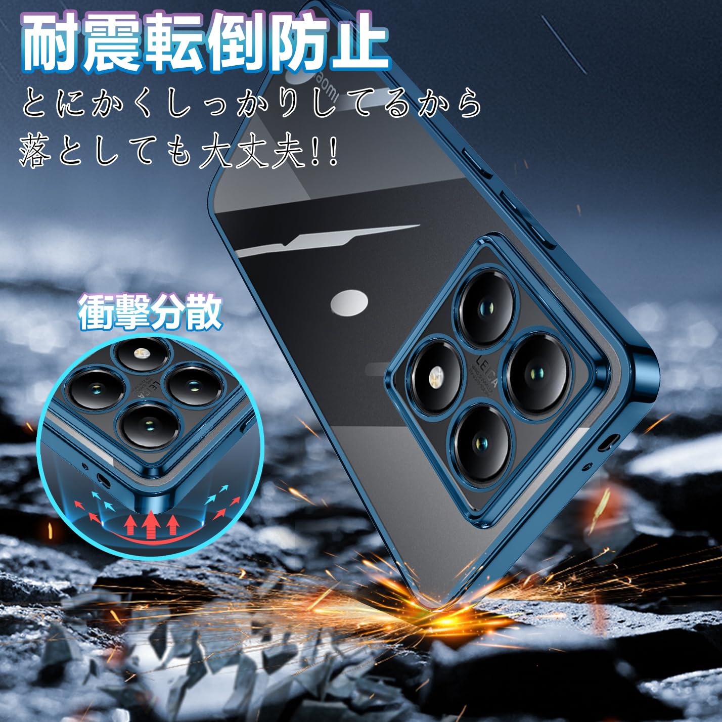 【人気】Xiaomi 14T Pro ケース クリア スマホケース 耐衝撃 米軍MIL規格 シャオミ 14t Pro ケース 柔軟なTPU素材 超薄型 擦り傷防止 メッキ加工 ワイヤレス充電対応 (ブルー) | GIGATERA