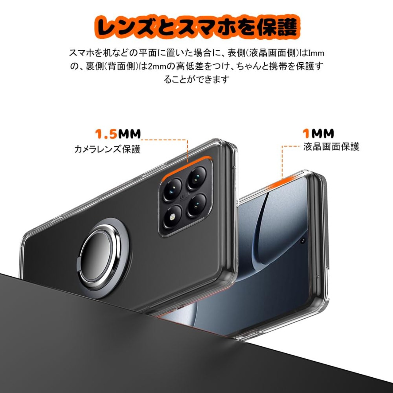 対応 XiaoMi 14T Pro ケース リング付き 透明 シャオミ 14T Pro スマホケース リング クリア シリコン 薄型 スタンド機能 耐衝撃 耐久 滑り止め(XiaoMi 14T Pro クリア)