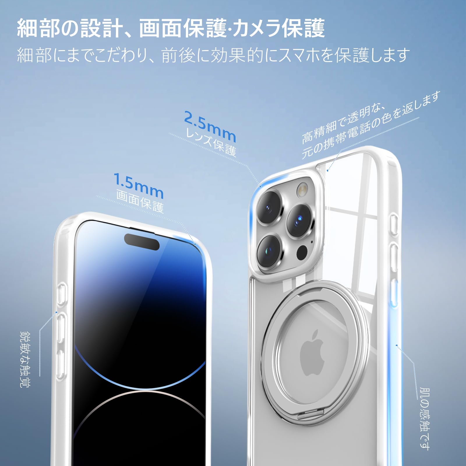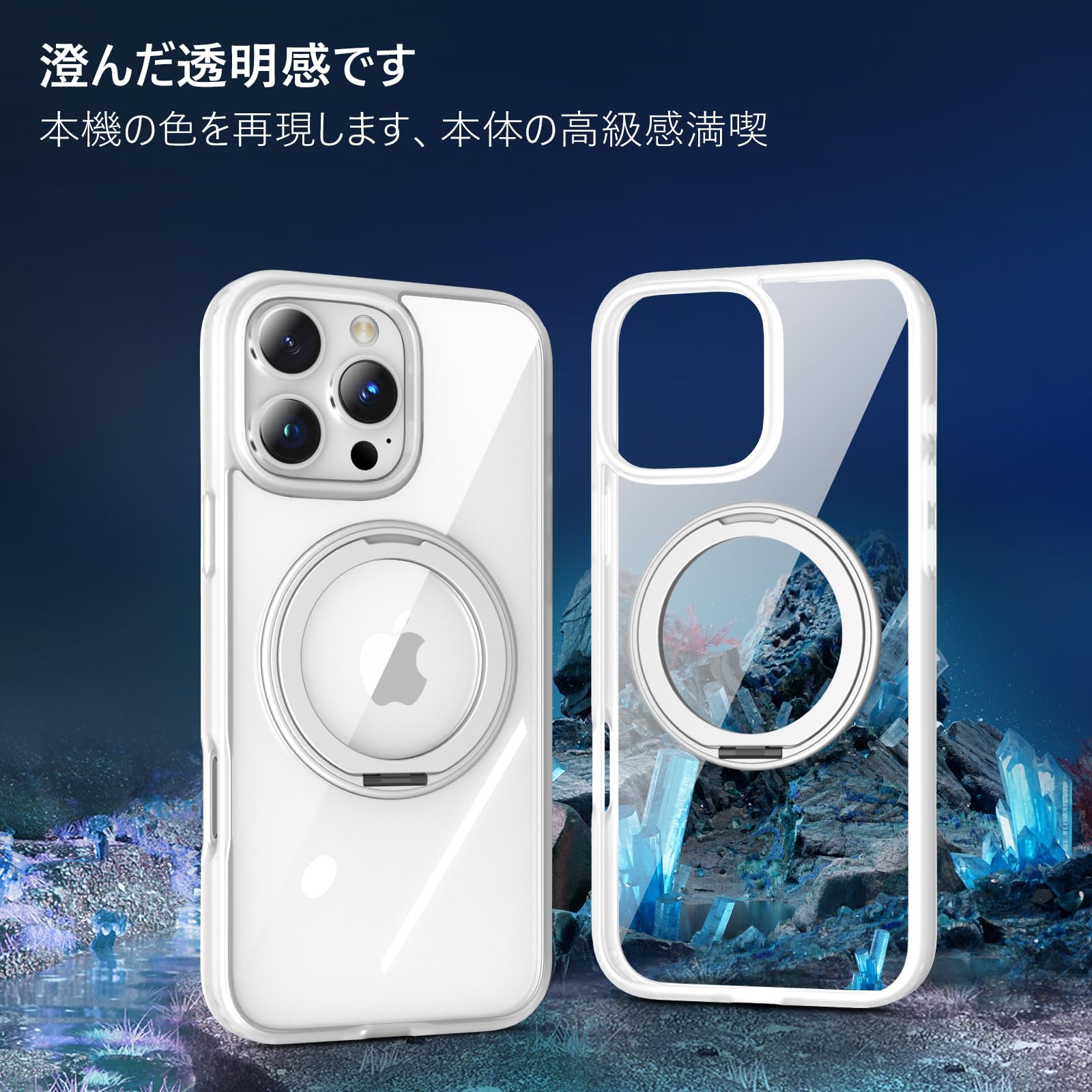 【360度回転スタンド・縦横両対応】KATSUTOYO iPhone 14 pro 用 ケース magsafe 黄ばみにくい 強磁力リング マグネット搭載 360°回転スタンド 縦横両対応 MagSafe対応 高耐久性 米軍MIL規格 耐衝撃 指紋防止 iphone14プロ 用 ケース(6.1インチ)背殻クリア 白くて透明