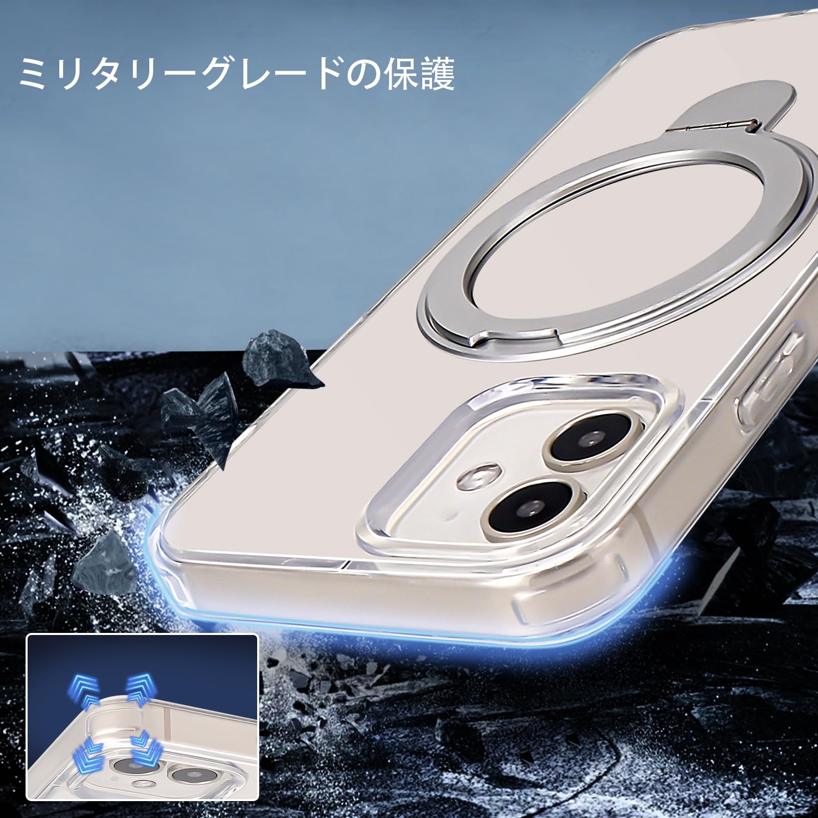 Xiaomi 15 Ultra 5G 用 ケース【Magsafeリング・スタンド一体】丸型スタンド付きマグネット搭載 ワイアレス充電縦横両対応 米軍MIL規格 耐衝撃 マット感 半透明 指紋防止 カメラレンズ保護 シャオミ 15Ultra 用ケース ストラップホール付き-クリア