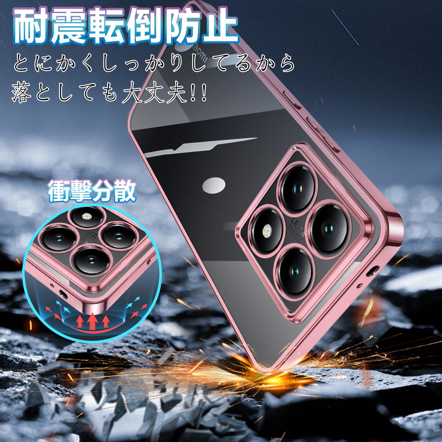 【特価】Xiaomi 14T Pro ケース クリア スマホケース 耐衝撃 米軍MIL規格 シャオミ 14t Pro ケース 柔軟なTPU素材 超薄型 擦り傷防止 メッキ加工 ワイヤレス充電対応 (ローズゴールド) | GIGATERA