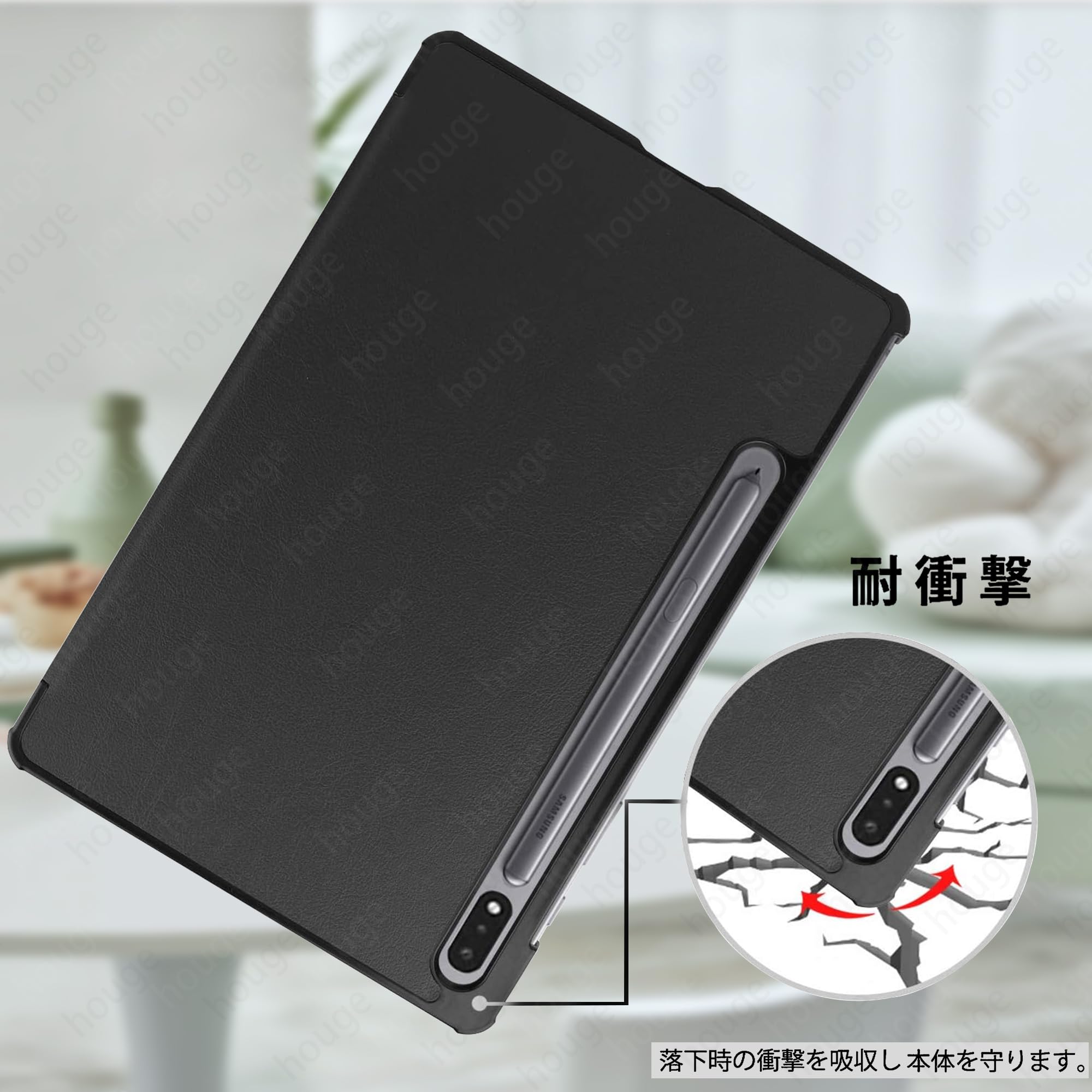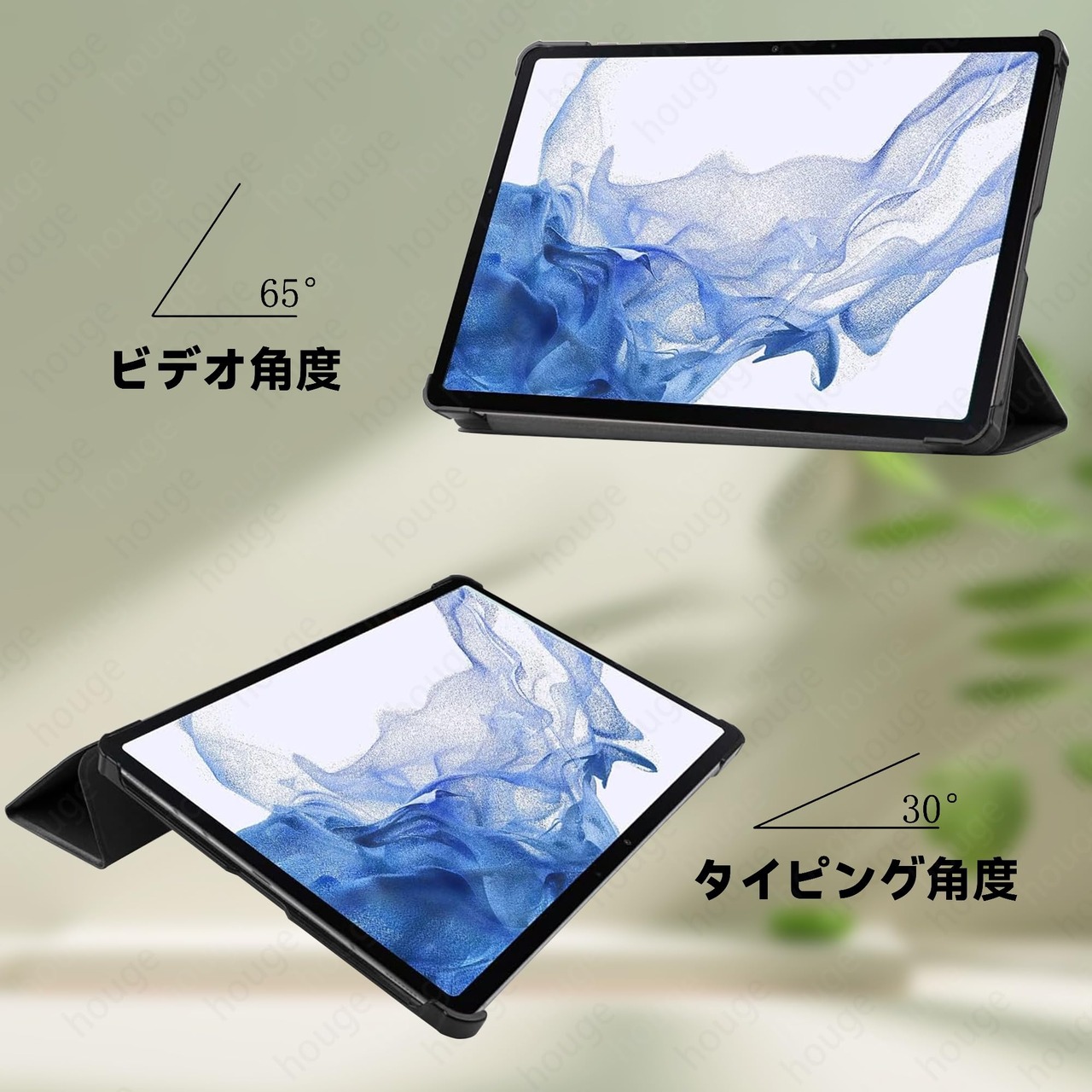 houge 【 タブレットケース 】 for Galaxy Tab S9 用の ケース 三つ折り 用の タブレットケース スタンド カバー オートウェイクアップ/スリープ機能付き 保護カバー ハードカバー 11インチ スタンド機能付き マグネット 多角度横置き調節 耐衝撃 薄型 PU 軽量 サムスン Galaxy Tab S9 ブラック