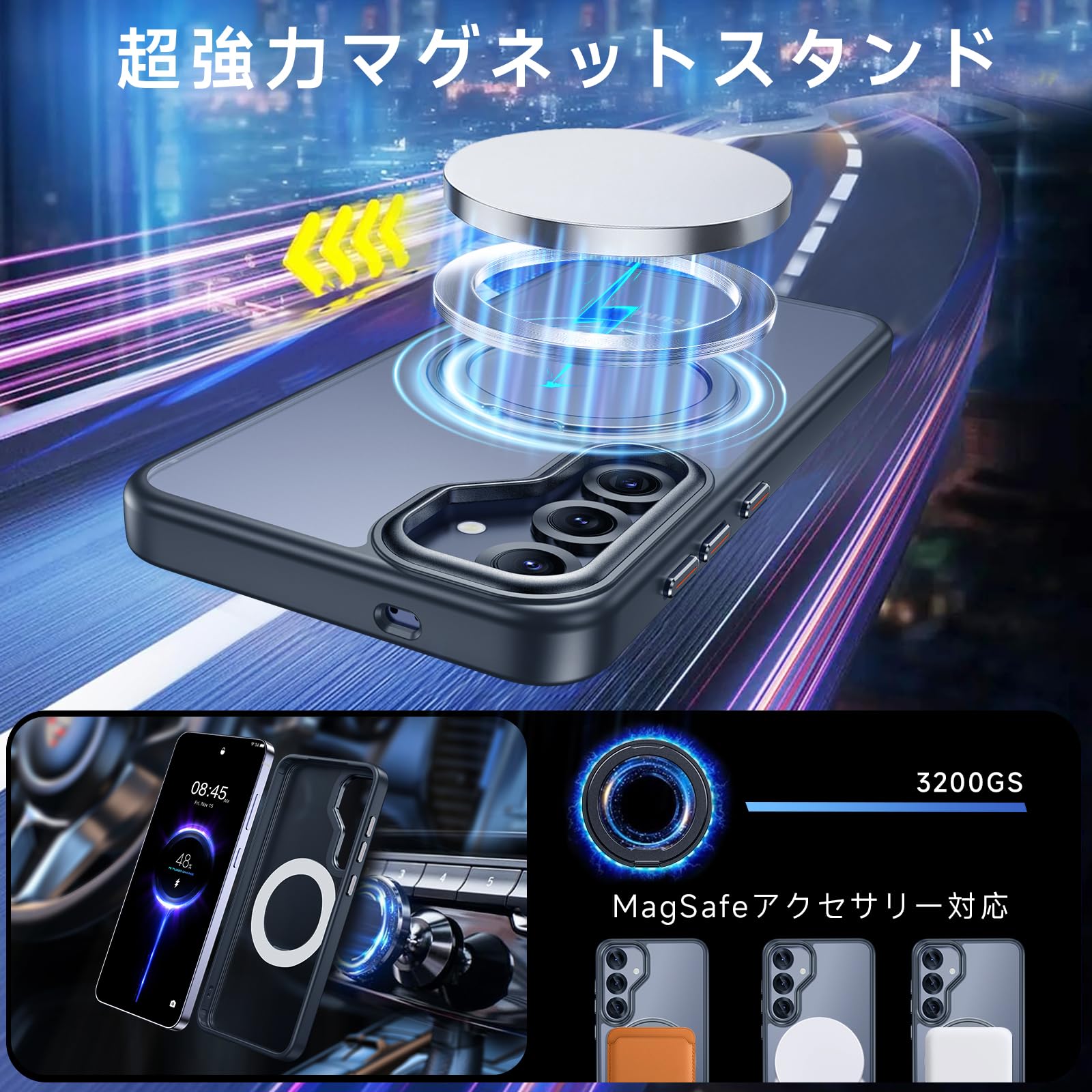 【特価】【米軍MIL規格・Magsafe対応】Galaxy S25 用 ケース MagSafe対応 リング 360°回転スタンド機能 縦横両対応 半透明 黄ばみ防止 ワイヤレス充電 レンズ保護 耐衝撃 携帯カバー ギャラクシー S25 カバー マグネット搭載 車載ホルダー マグセーフ対応 おしゃれ (ブラック) | GIGATERA