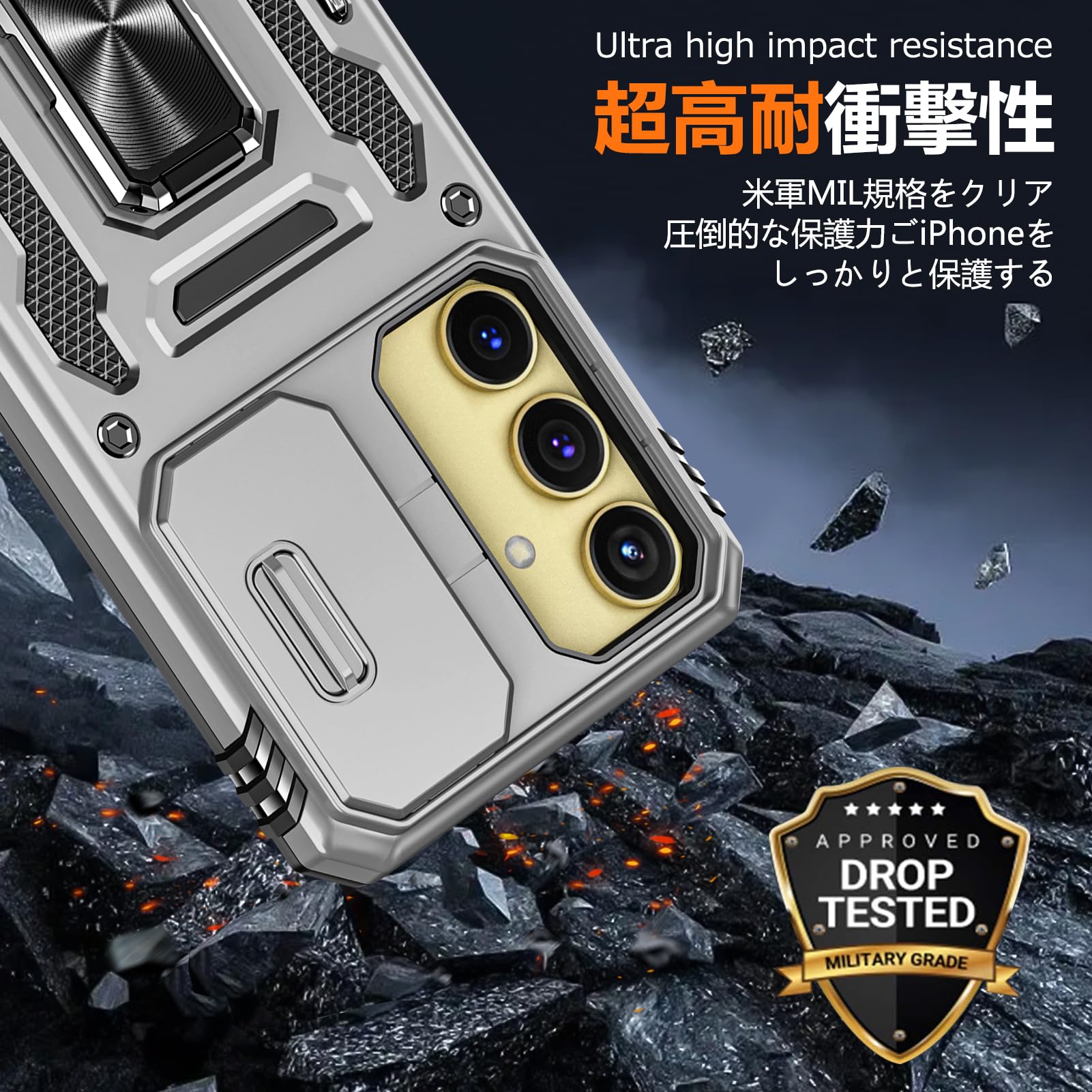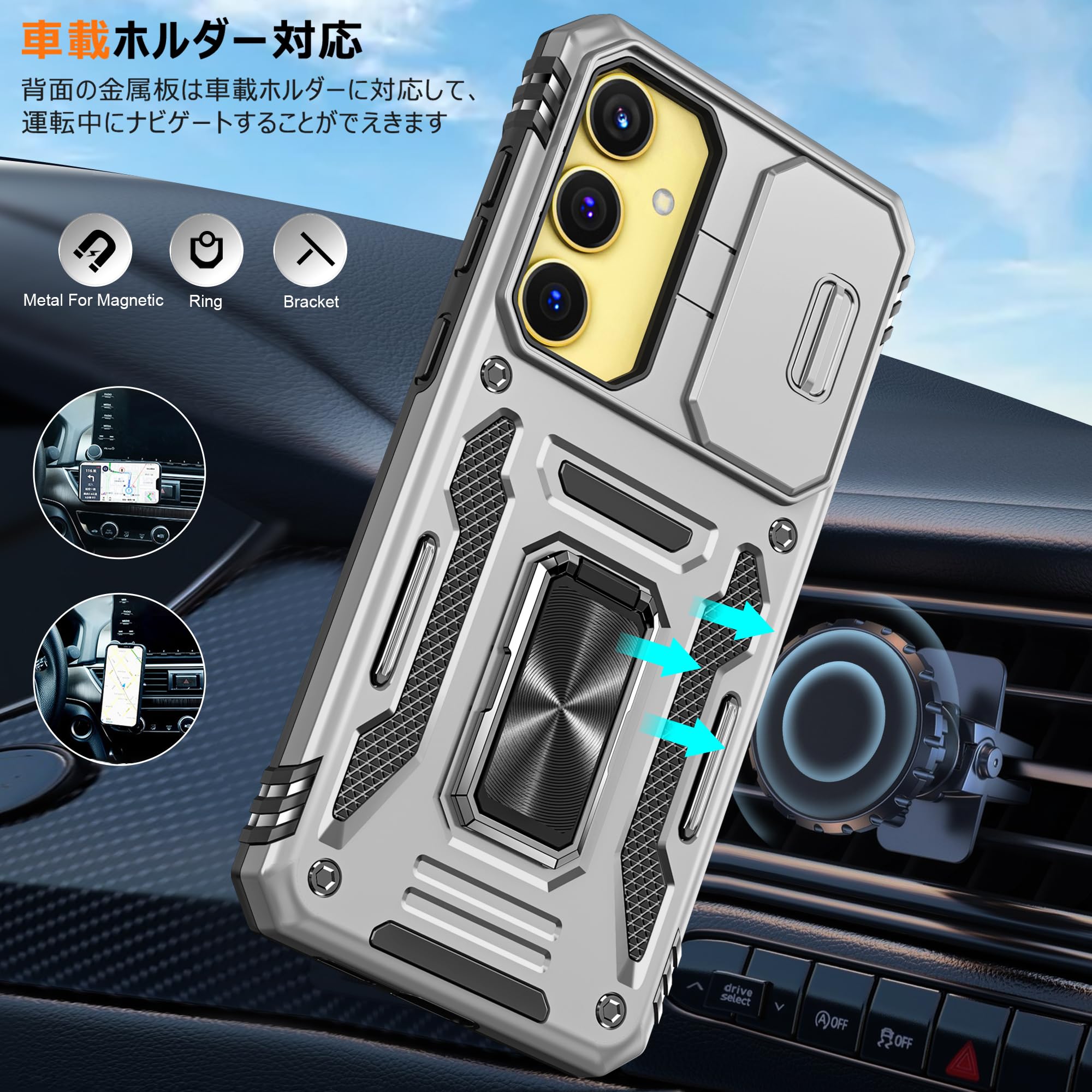 Galaxy S25 用 ケース リング付き 衝撃吸収 耐衝撃 スタンド機能 米軍MIL規格 ギャラクシーs25 用ケース 全面保護 360°回転 滑り落ちにくい 人気 おしゃれ 携帯カバー グレー WY95-155
