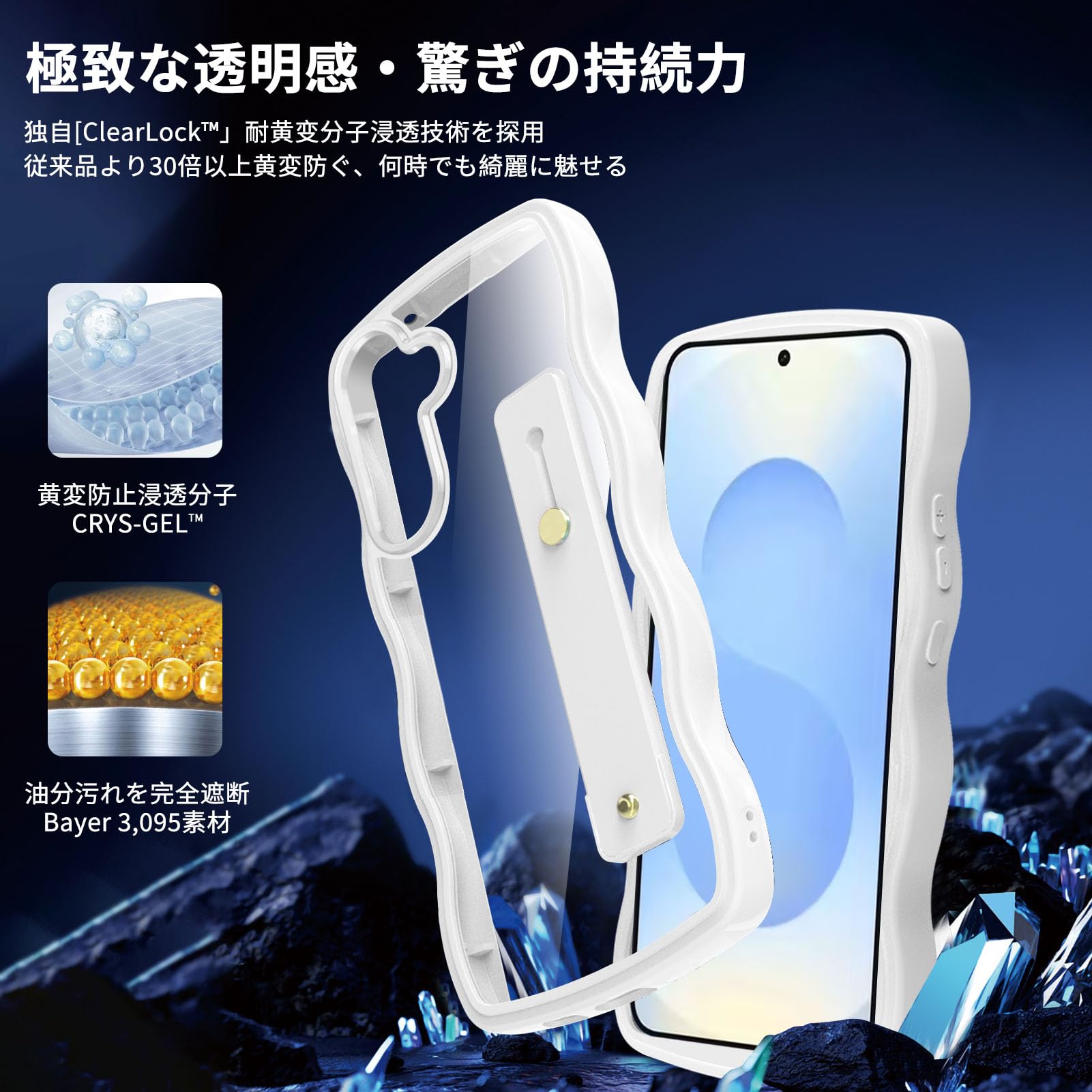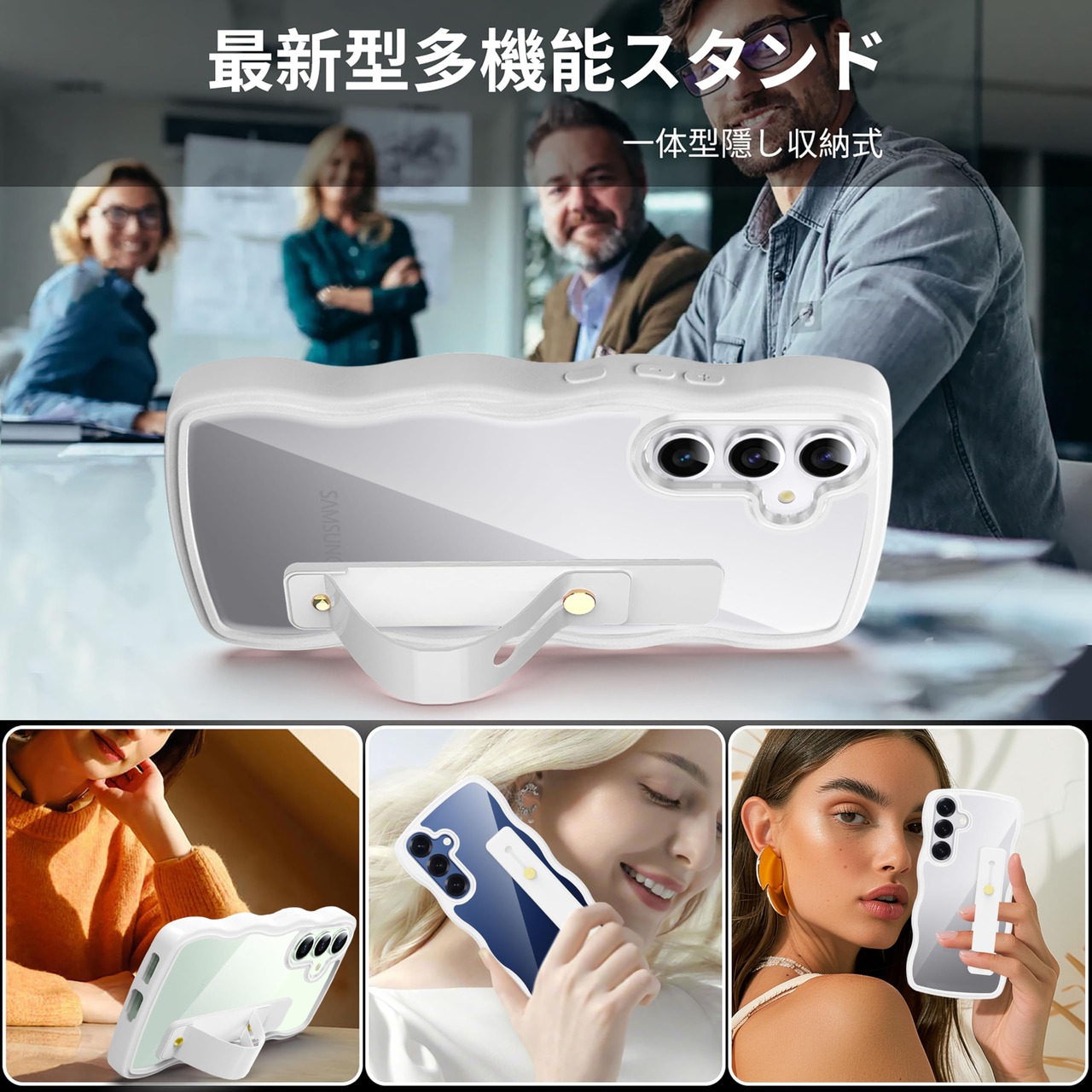 クリア Galaxy S25 ケース スタンド機能 SC-51F カバー ス ギャラクシーS25 マホケース 耐衝撃 透明 軽量 薄型 おしゃれ 人気 ストラップホール (ホワイト)