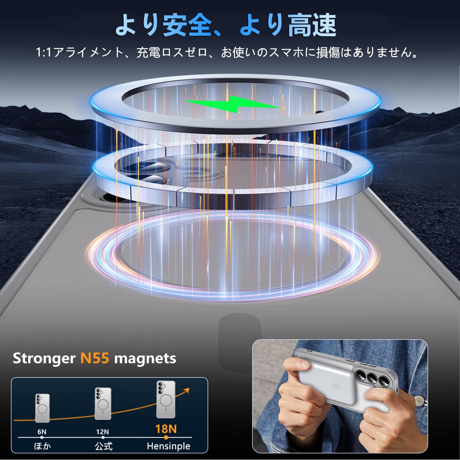 材質 ポリカーボネート(PC), 熱可塑性ポリウレタン(TPU),黄変防止素材,マグネット搭載